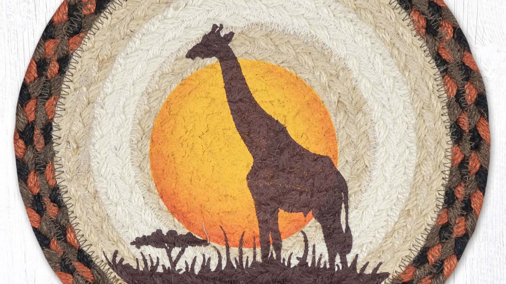 Earth Rugs Giraffe Printed Round Jute Trivet 10"x10" Safari Hot Pad