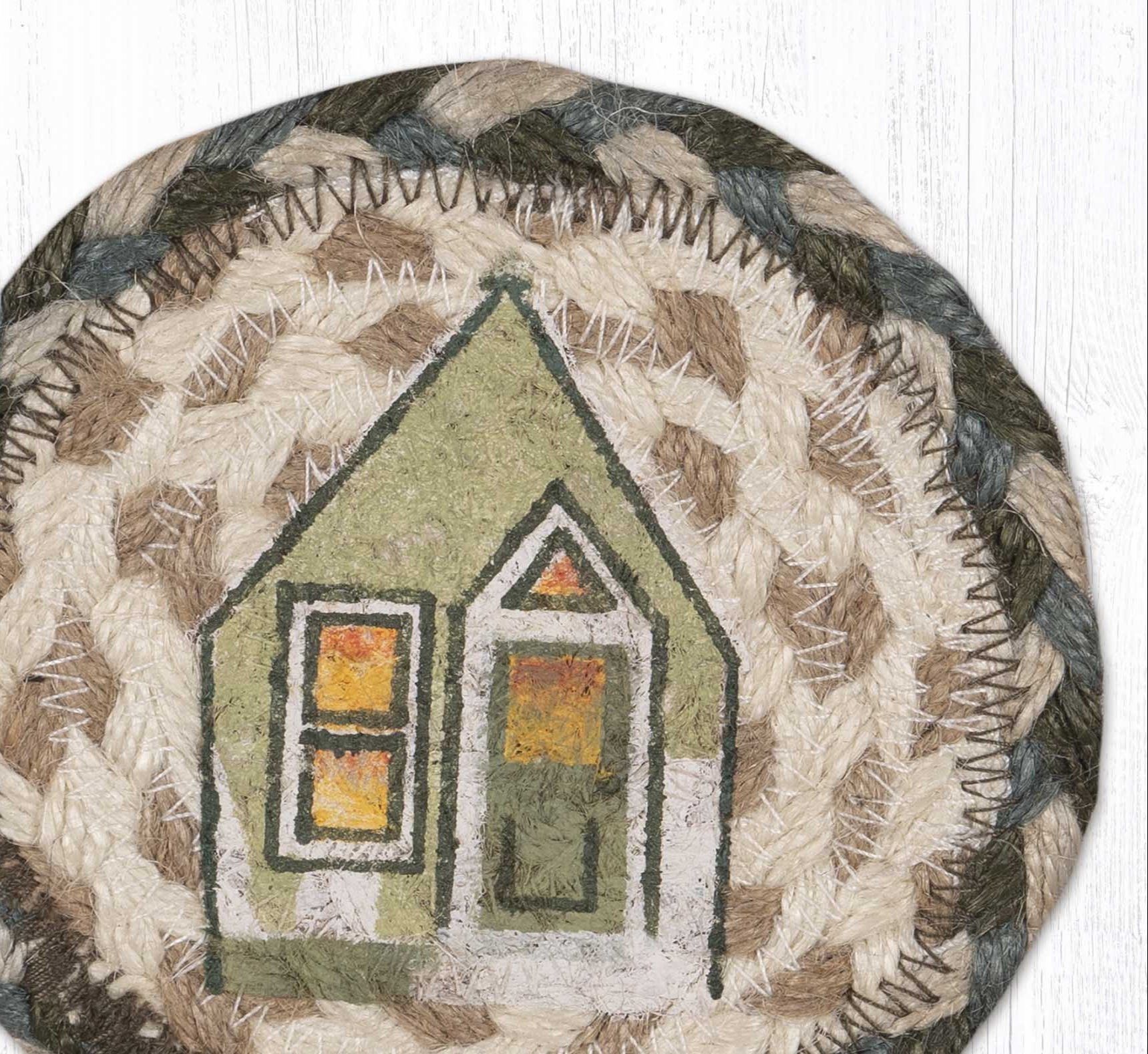 Celebrate the warmth of the season with the Earth Rugs Holiday Village Printed Coaster, a 5"x5" square coaster crafted from eco-friendly braided jute. Featuring a charming winter village scene with snowy rooftops and festive decorations, this coaster adds cozy holiday spirit to your tabletop. The natural braided texture complements rustic, farmhouse, or cottage holiday décor, while protecting surfaces from heat and moisture. Perfect for holiday gatherings, it enhances any coffee table, sideboard, or seasonal display with timeless charm and functionality.