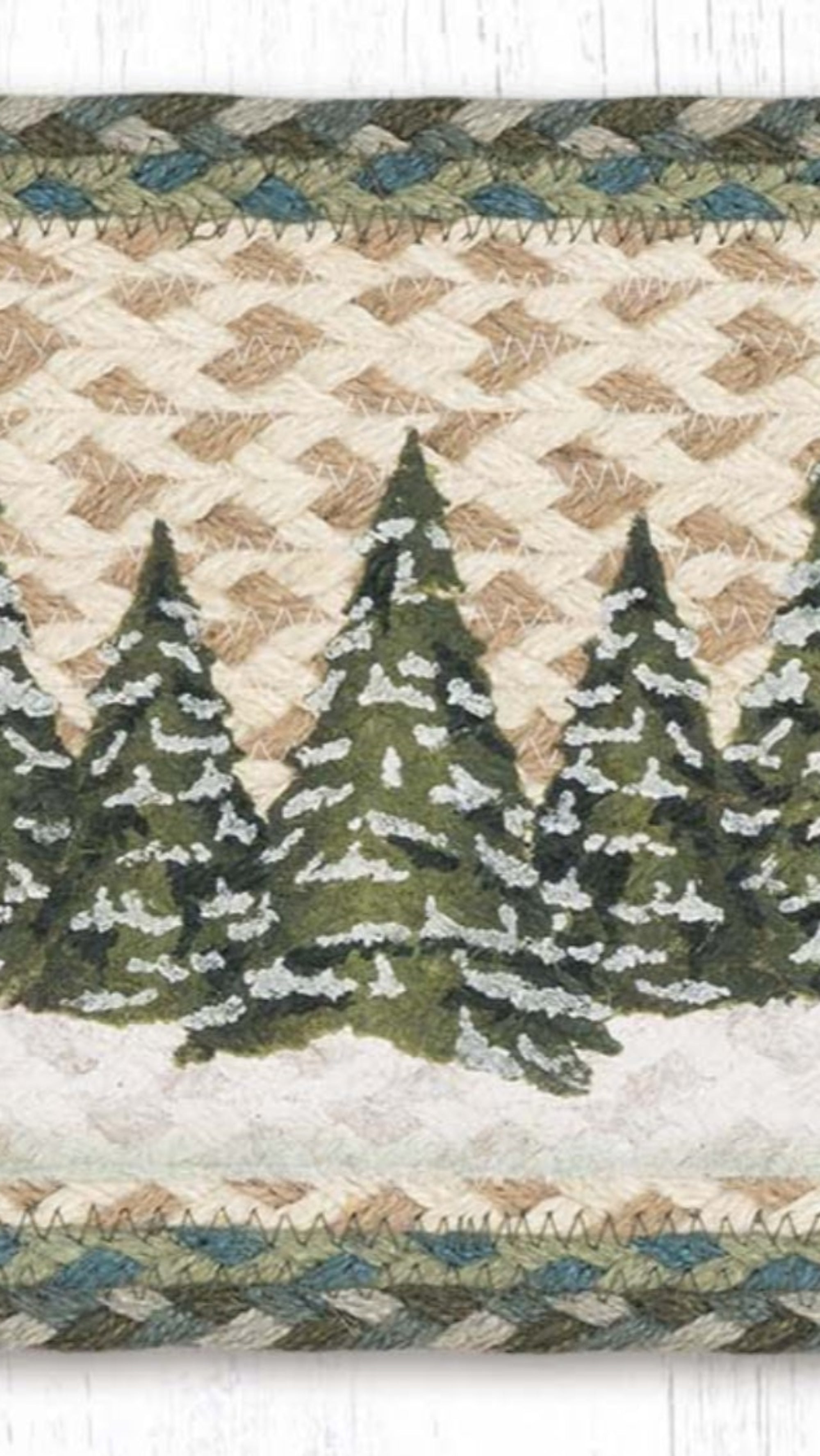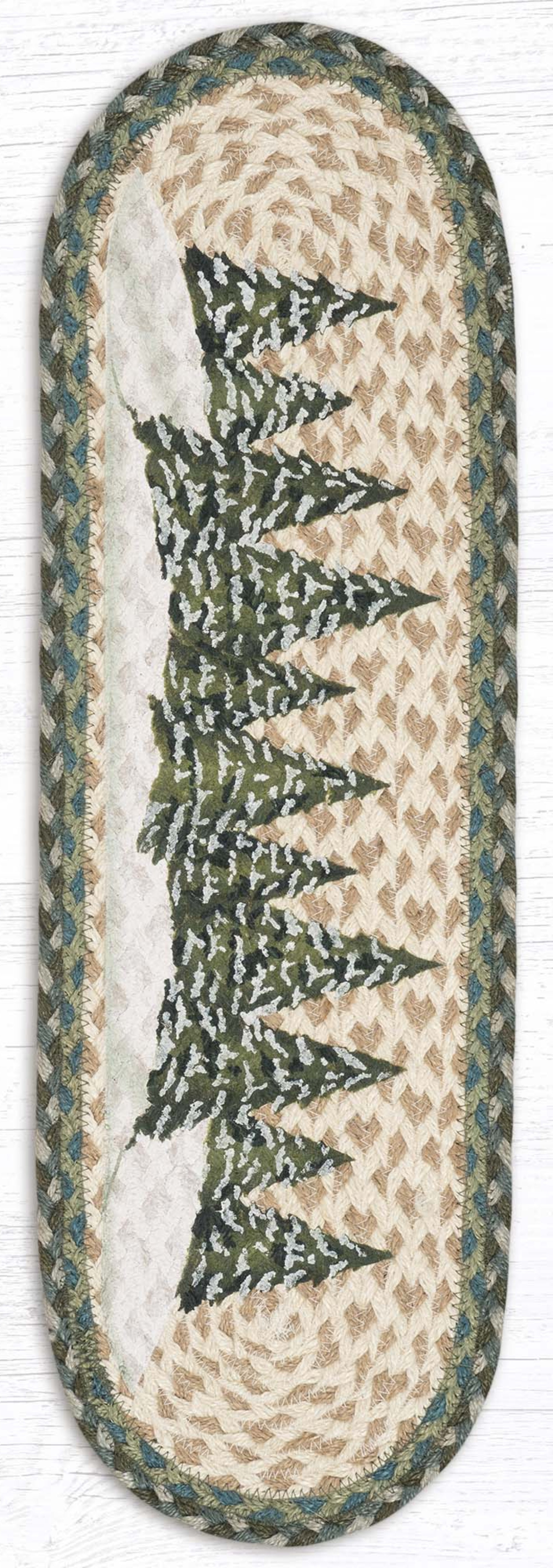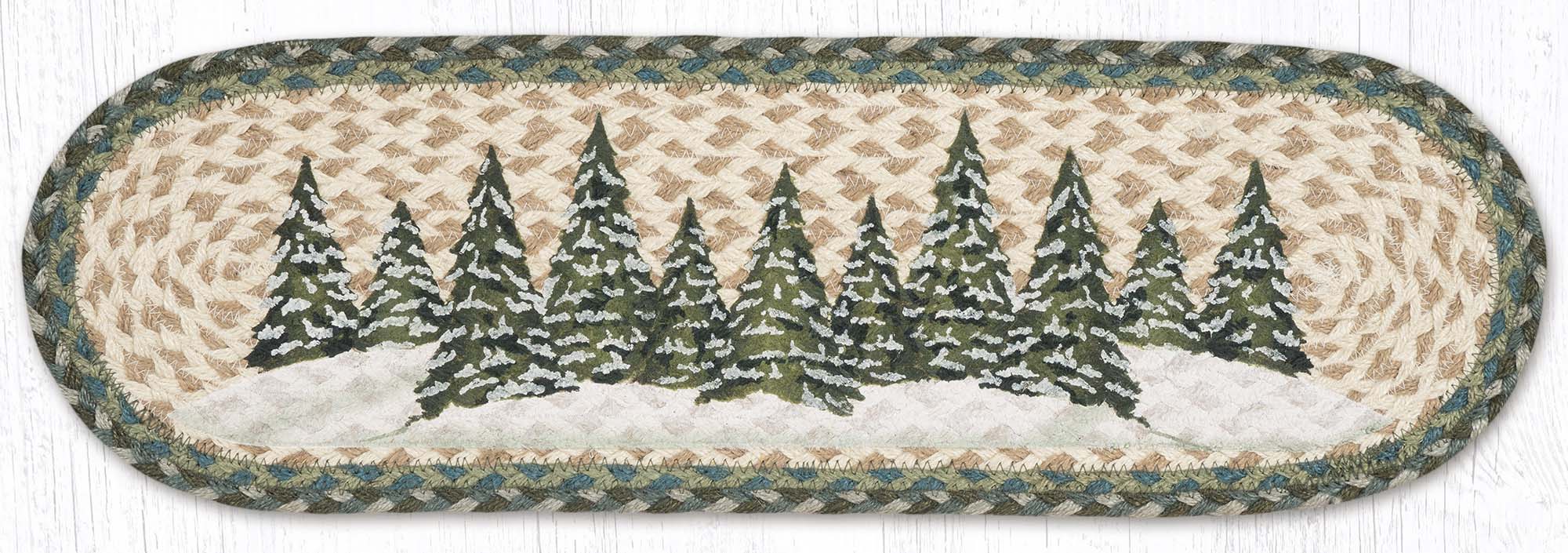 Earth Rugs Holiday Village Trees Oval Stair Tread 27"x8.25" – Handcrafted Jute Rug
