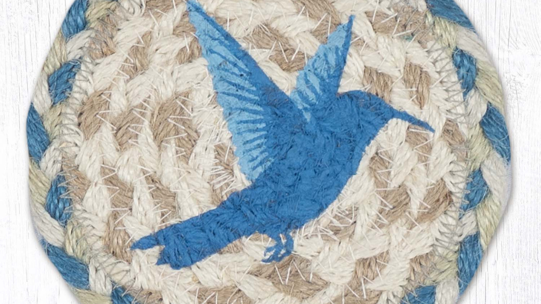 Bring a touch of grace and motion to your tabletop with the Earth Rugs Hummingbird Printed Jute Coaster. This 5-inch round coaster is crafted from 100% natural braided jute and showcases a beautifully illustrated hummingbird in mid-flight, sipping from vibrant florals. The design evokes feelings of tranquility and nature, making it a perfect addition to garden-themed, cottagecore, or springtime decor. Durable, eco-friendly, and protective, it’s ideal for everyday use while enhancing your space with light, airy charm.