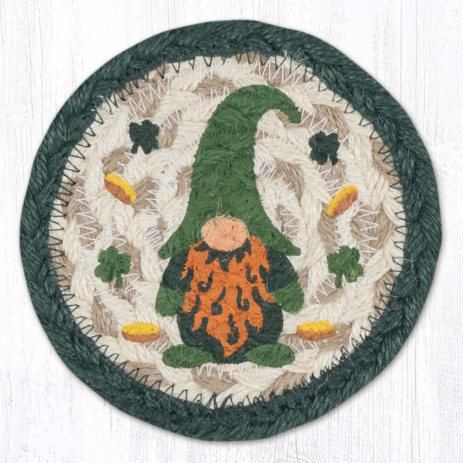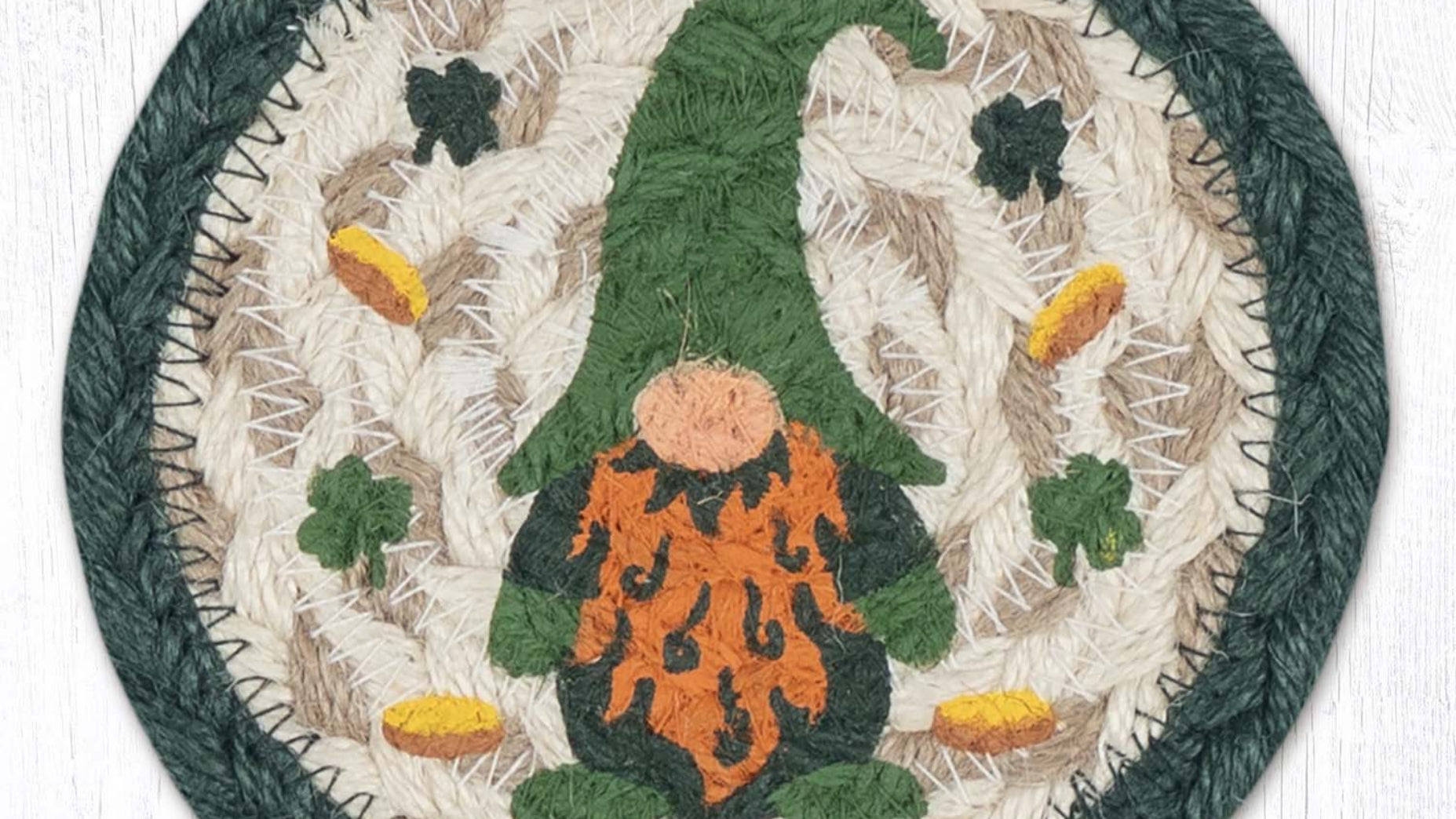 Earth Rugs Irish Gnome Jute Coaster – 5"x5" Round Natural Braided Coaster with St. Patrick's Day Print