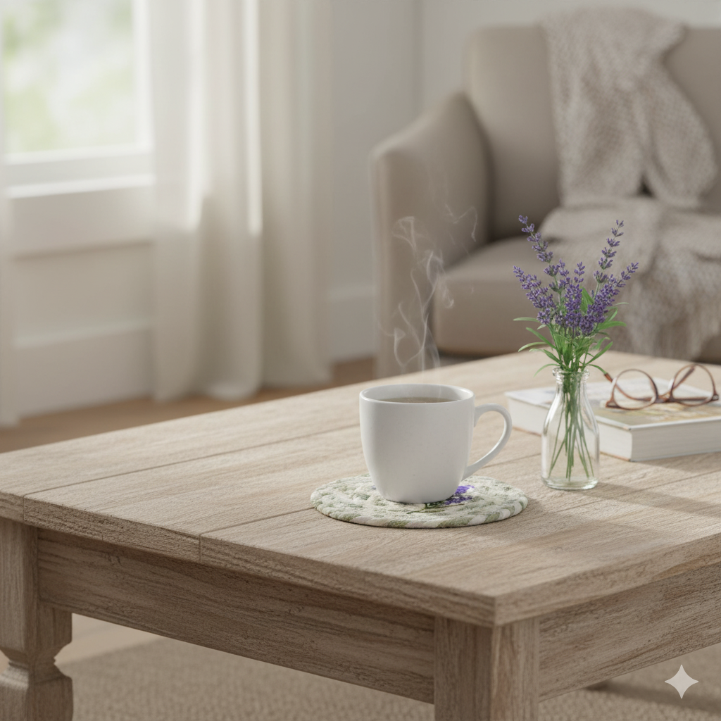 Earth Rugs Lavender Printed Coaster 5"x5" Rustic Farmhouse Decor
