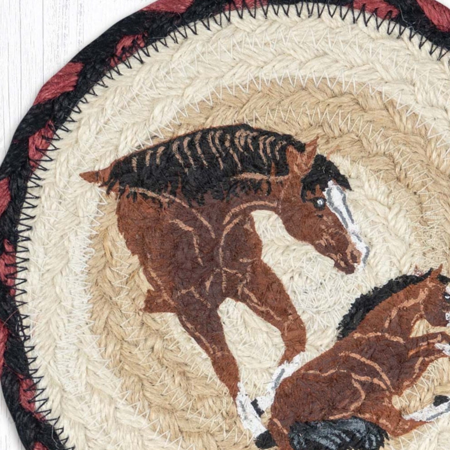Earth Rugs Mom and Pony Round Large Coaster 7"x7" – Braided Jute Horse Print Coaster