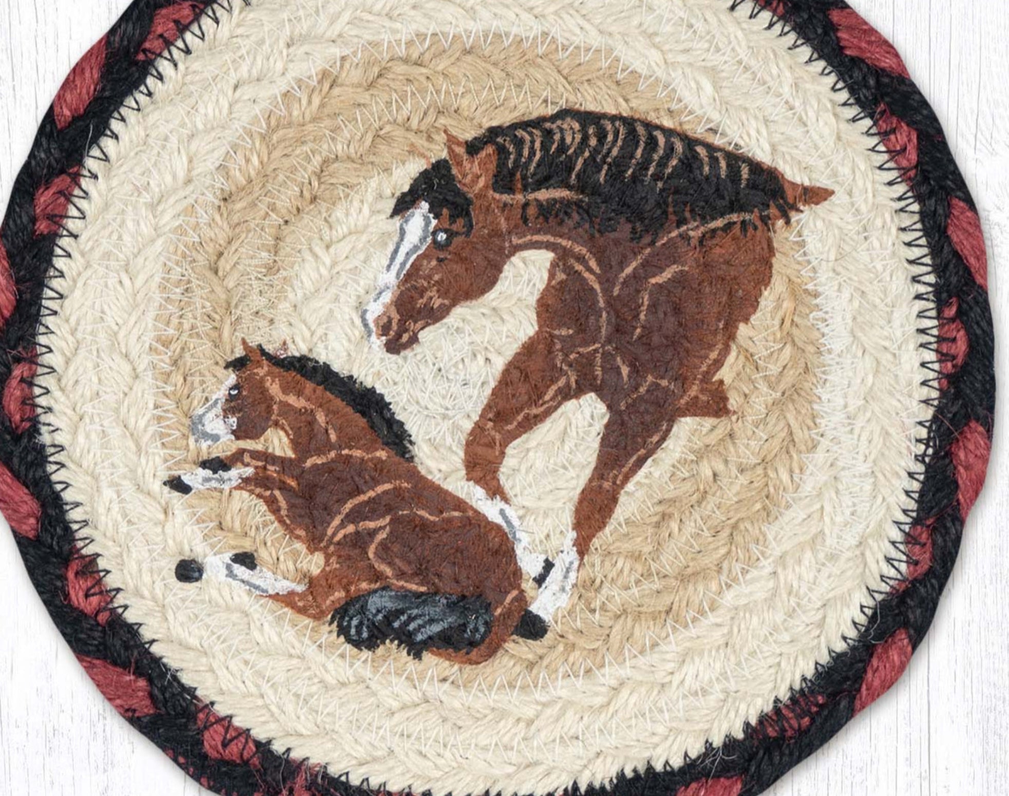 SKU - ER79-319MPMom and Pony Round Large Coaster 7"x7" – Braided Jute Horse Print Coaster