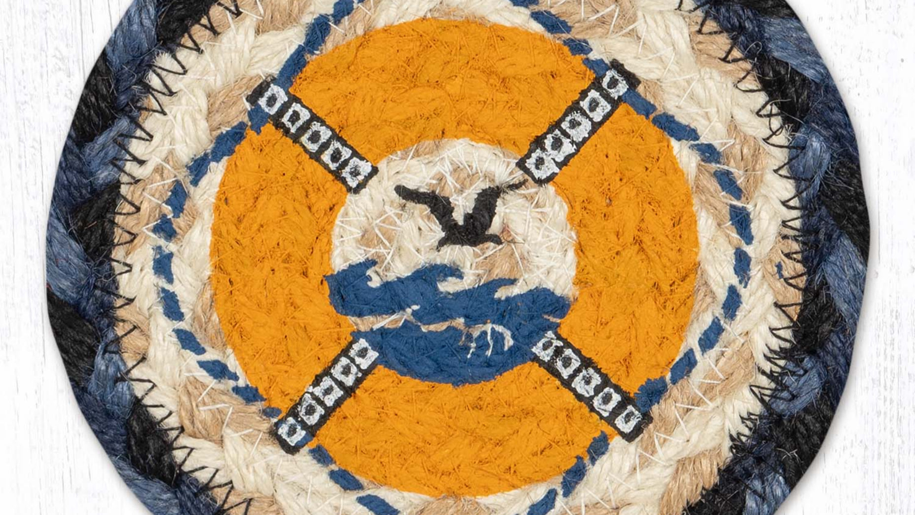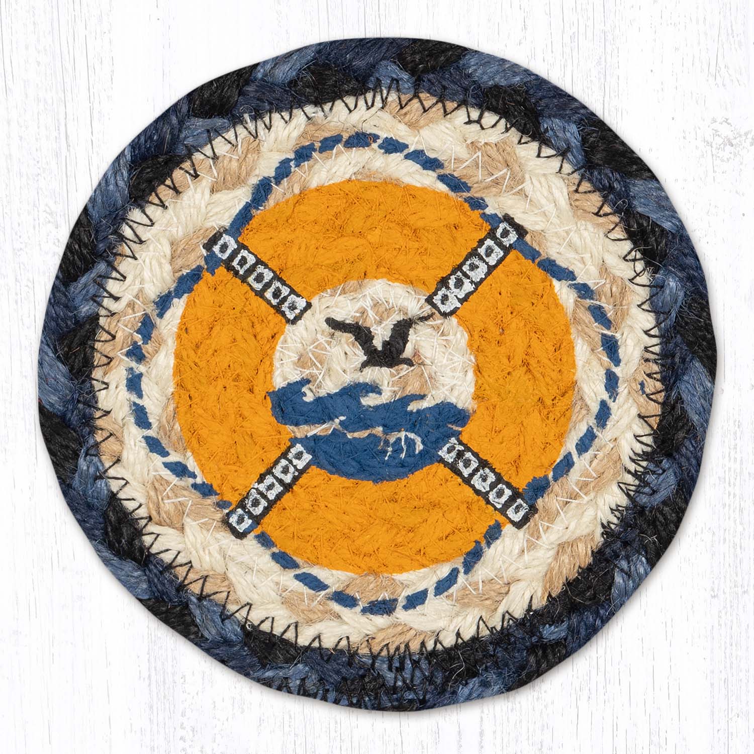 Earth Rugs Nautical Lifebuoy Printed Coaster – 5"x5" Jute Square, Coastal Red & Navy Decor Table Accent