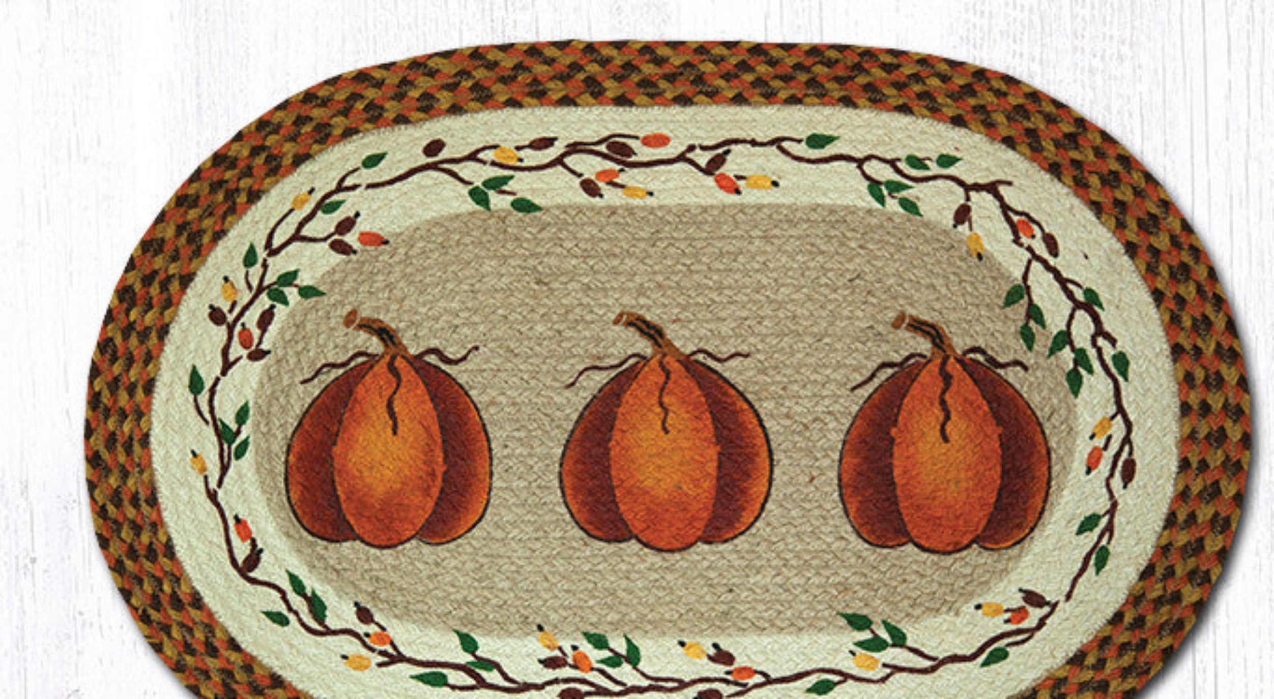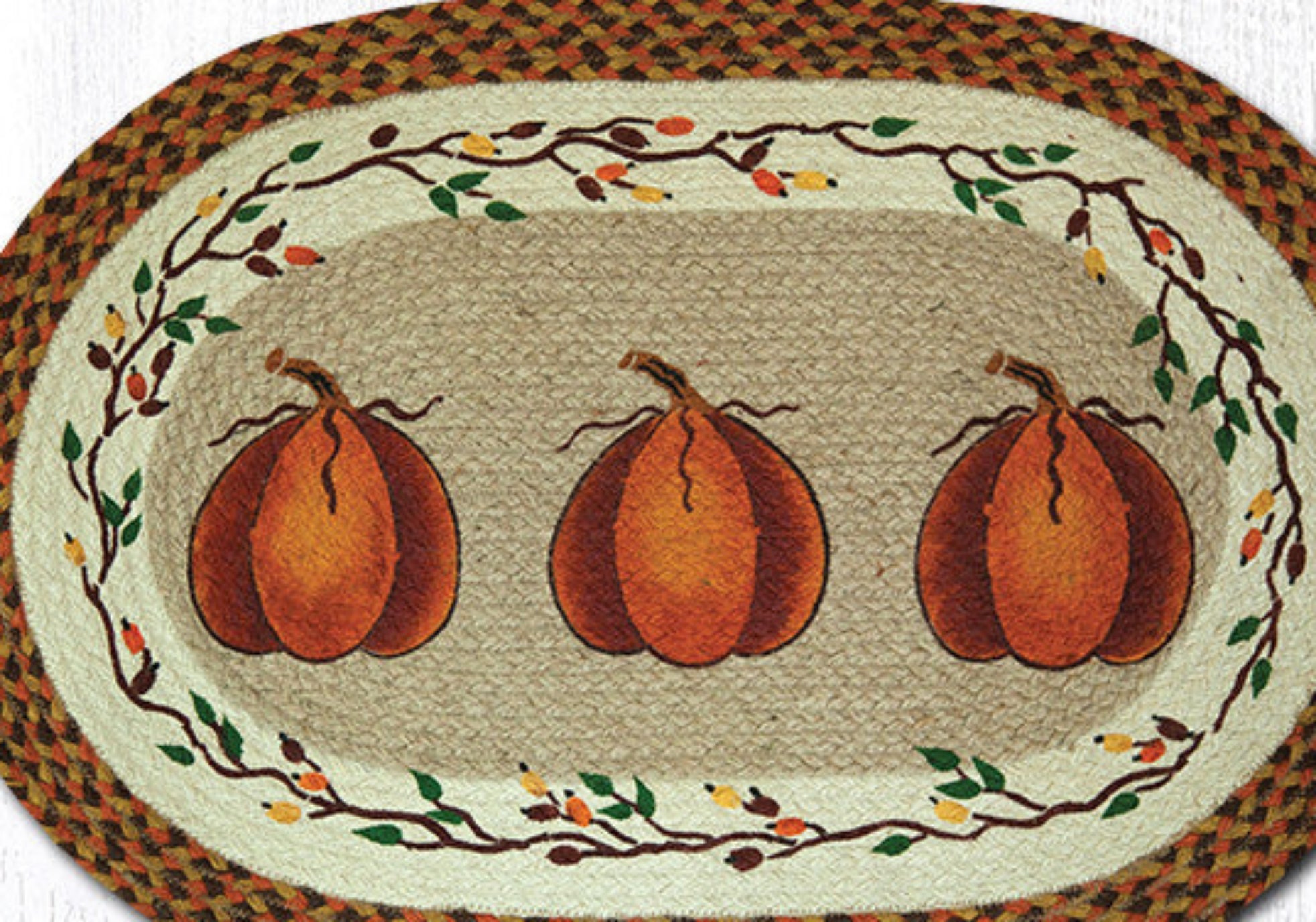 Earth Rugs Harvest Pumpkin Oval Patch Tread – 20"x30" Hand-Stenciled Braided Jute Fall Accent