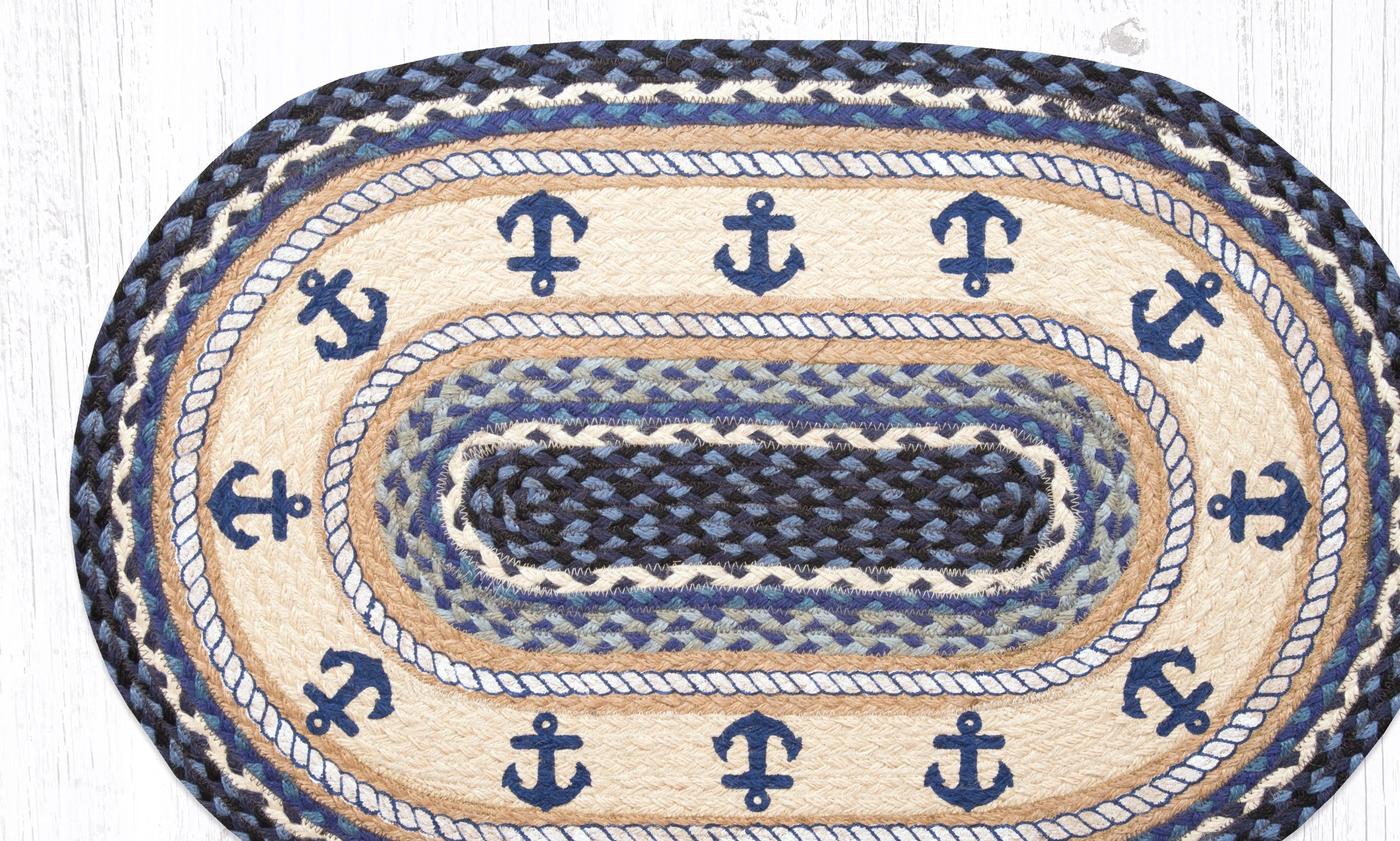 Earth Rugs Oval Patch Tread – Nautical Anchor Design in Braided Jute, 20"x30" Coastal Entryway Accent Rug