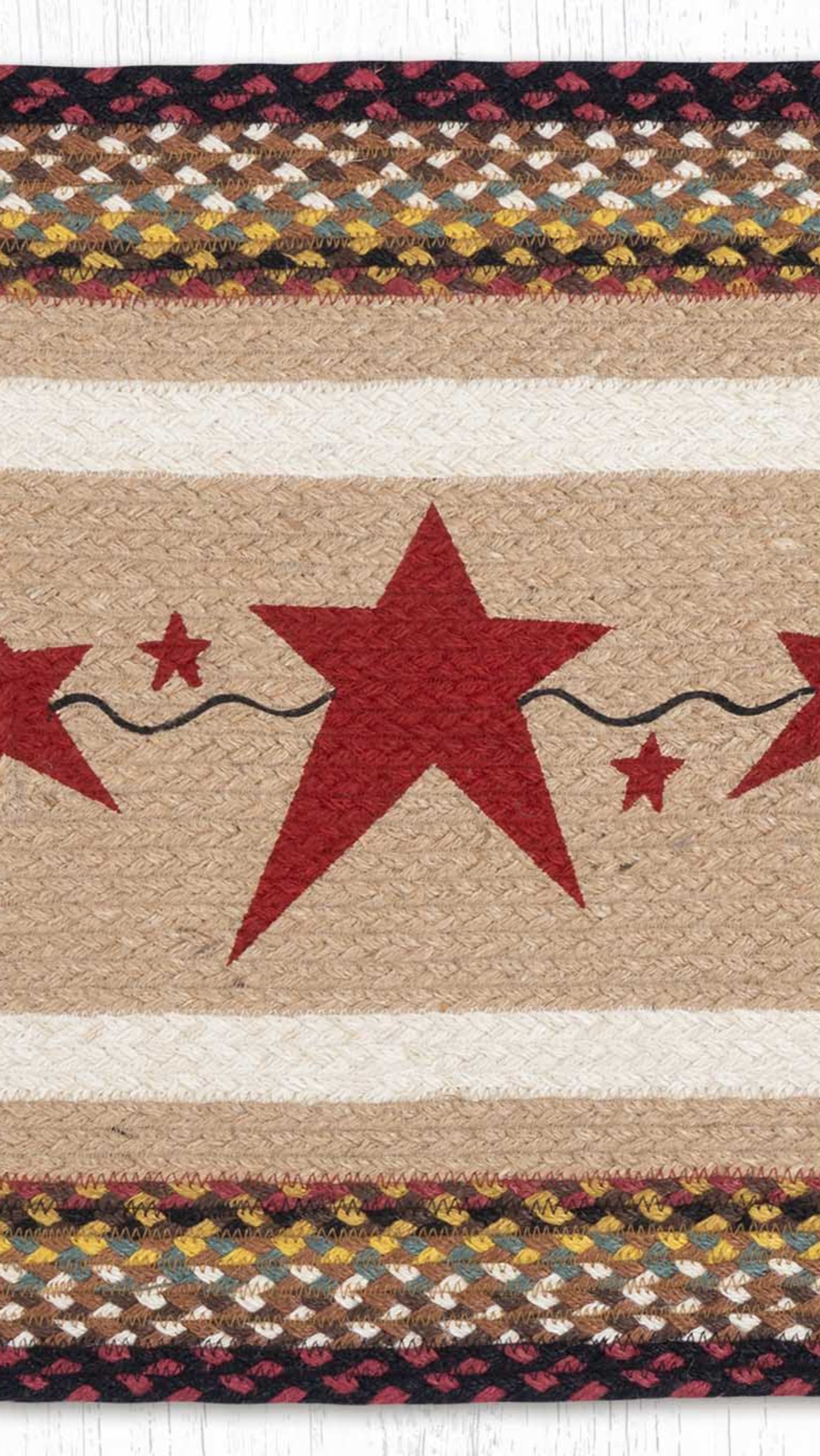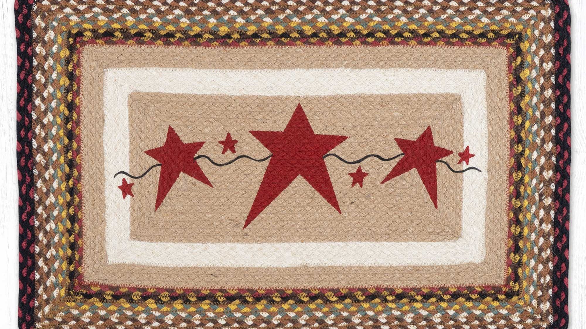 Earth Rugs Stars Burgundy Oblong Patch Tread Rug – 20"x30" Rustic Craft Accent