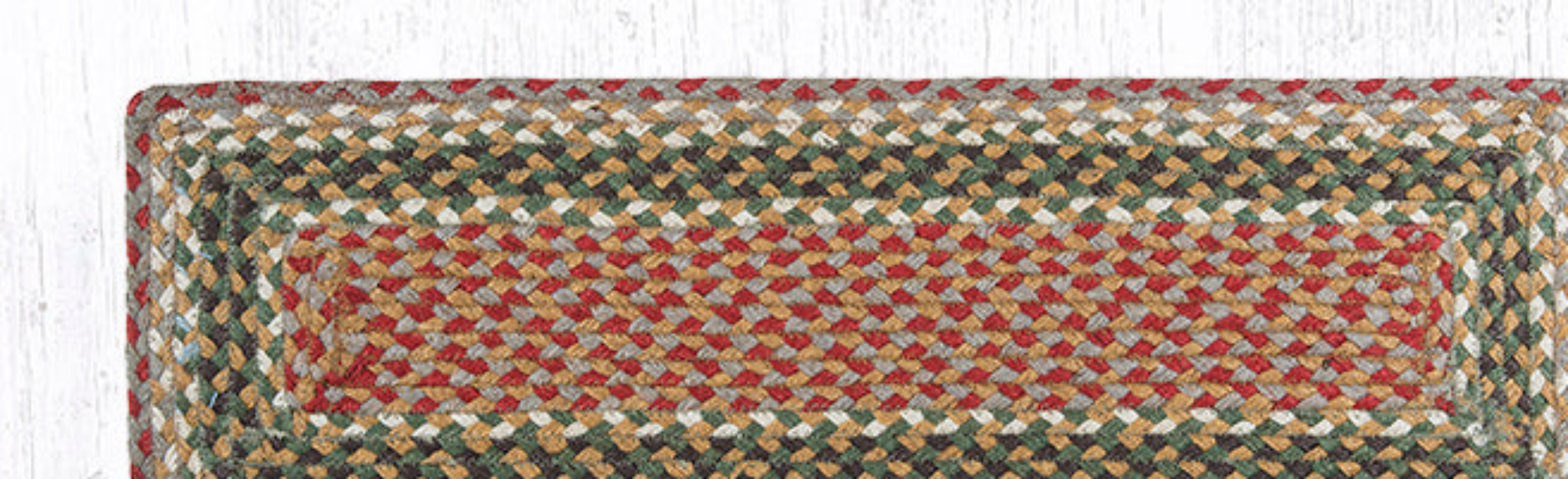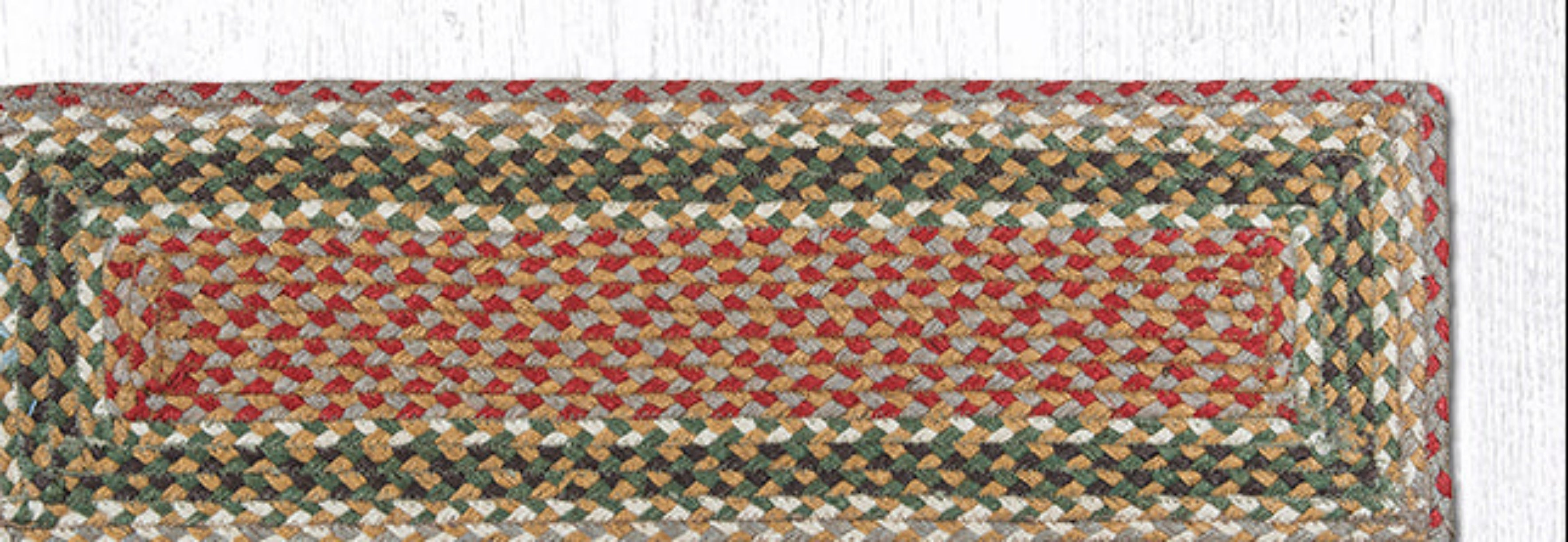 Add timeless style and safety to your staircase with the Earth Rugs RC-24 Olive/Burgundy/Gray Rectangle Stair Tread. Measuring 27"x8.25", this braided jute rectangular stair tread features a classic color combination of olive green, burgundy, and gray, providing a versatile accent for traditional and rustic interiors. The natural braided jute material offers durability and traction, helping to protect your stairs from wear while adding warmth and texture. Its rectangular shape is designed to fit securely on most stair steps, making it a practical and attractive addition to your home.