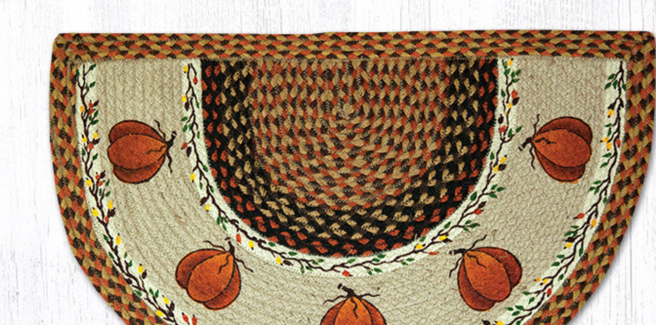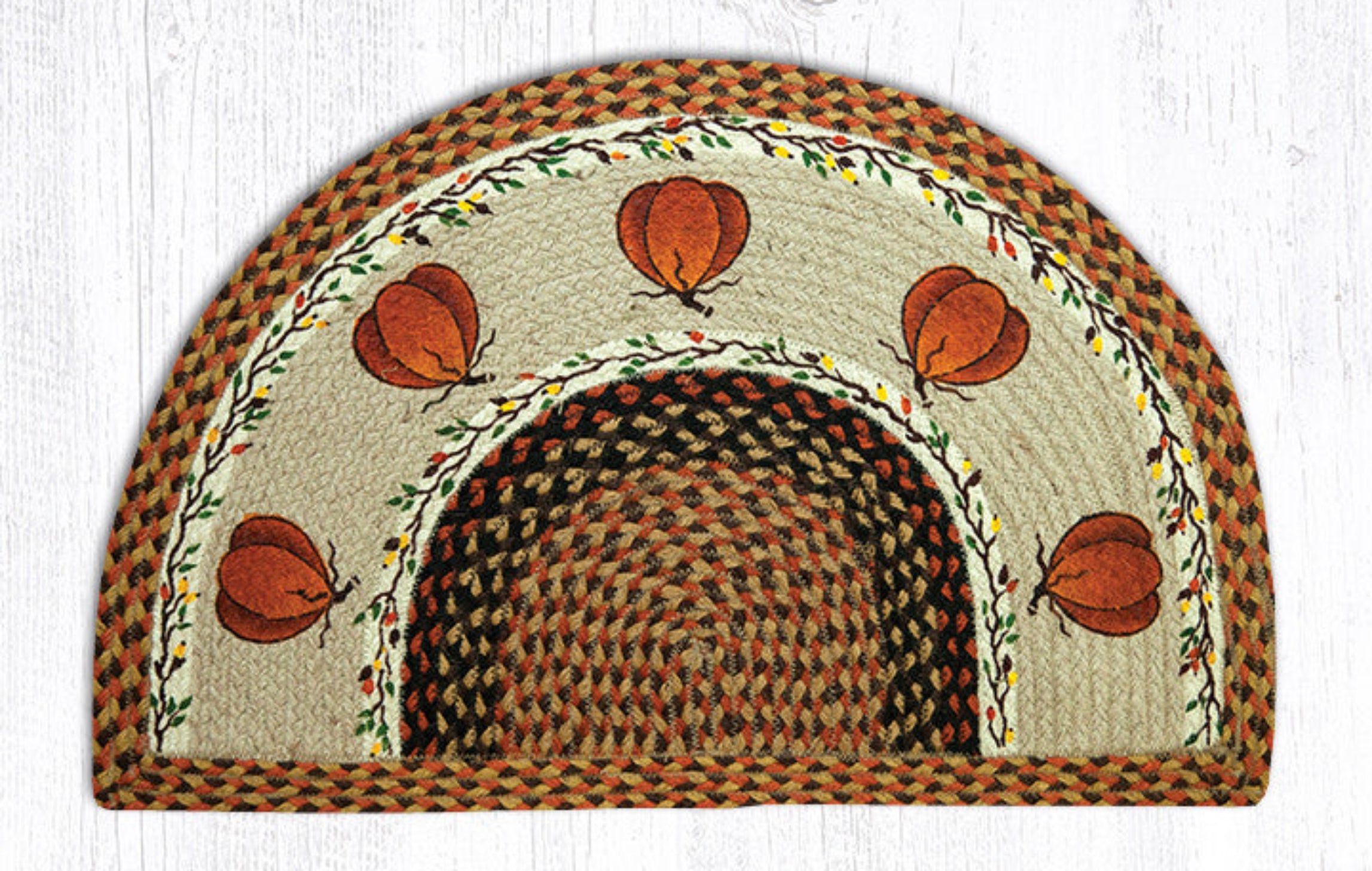 Earth Rugs Harvest Pumpkin Printed Slice Tread – 18"x29" Fall Half-Round Jute Accent Mat
