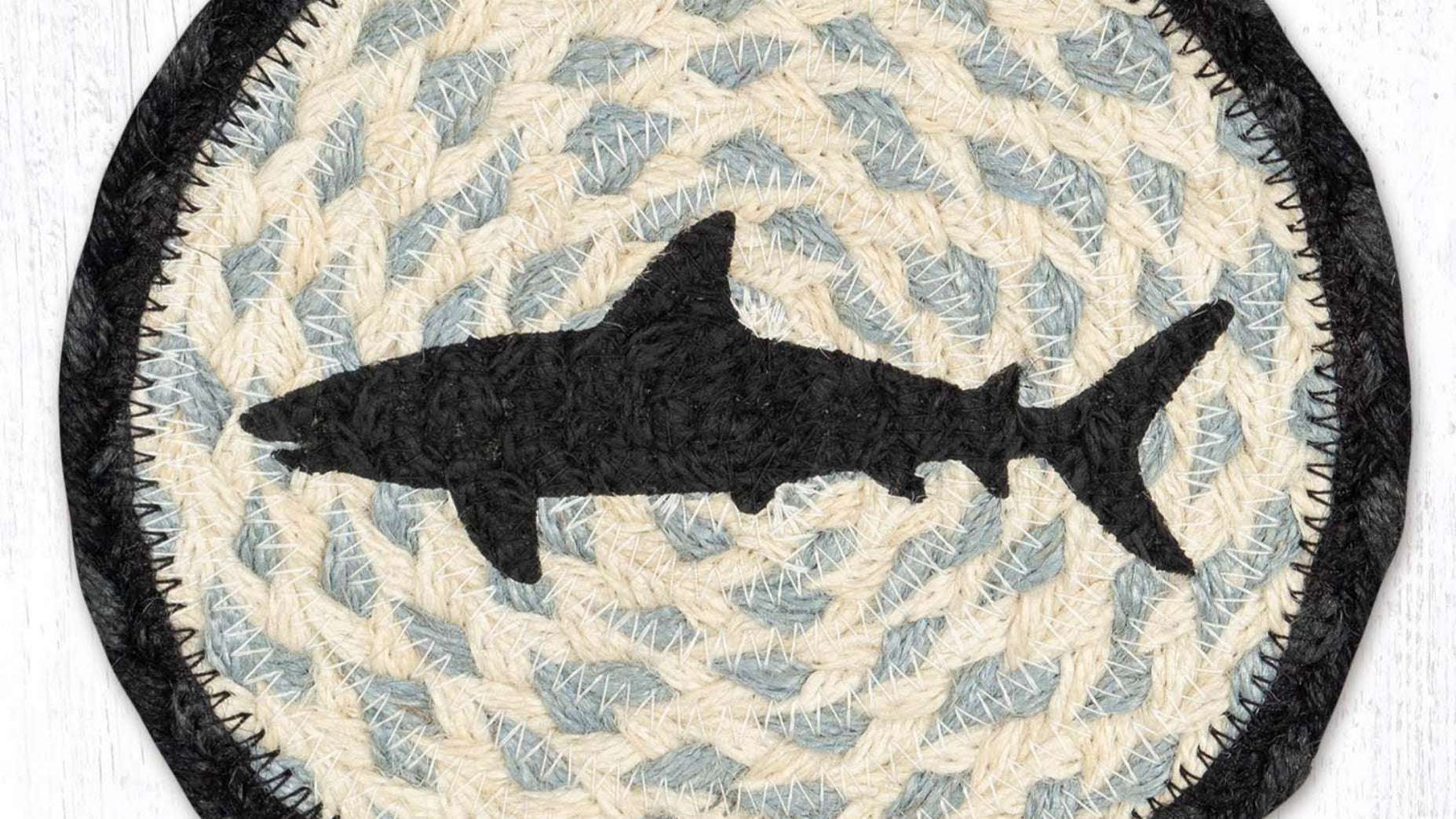 Bring ocean-inspired charm to your home with the Earth Rugs Shark Round Large Coaster, measuring 7 inches in diameter. Handcrafted from 100% natural braided jute, this eco-conscious piece showcases a bold hand-stenciled shark design, perfect for marine-themed décor. The round silhouette adds softness to your table setting, while the rustic, woven texture brings warmth and authenticity to any space. Whether you're outfitting a coastal kitchen, beach house, or lake cabin, this large coaster protects your surfaces in style while offering an artistic focal point. Use it alone or as part of a matching set for everyday use or themed events.