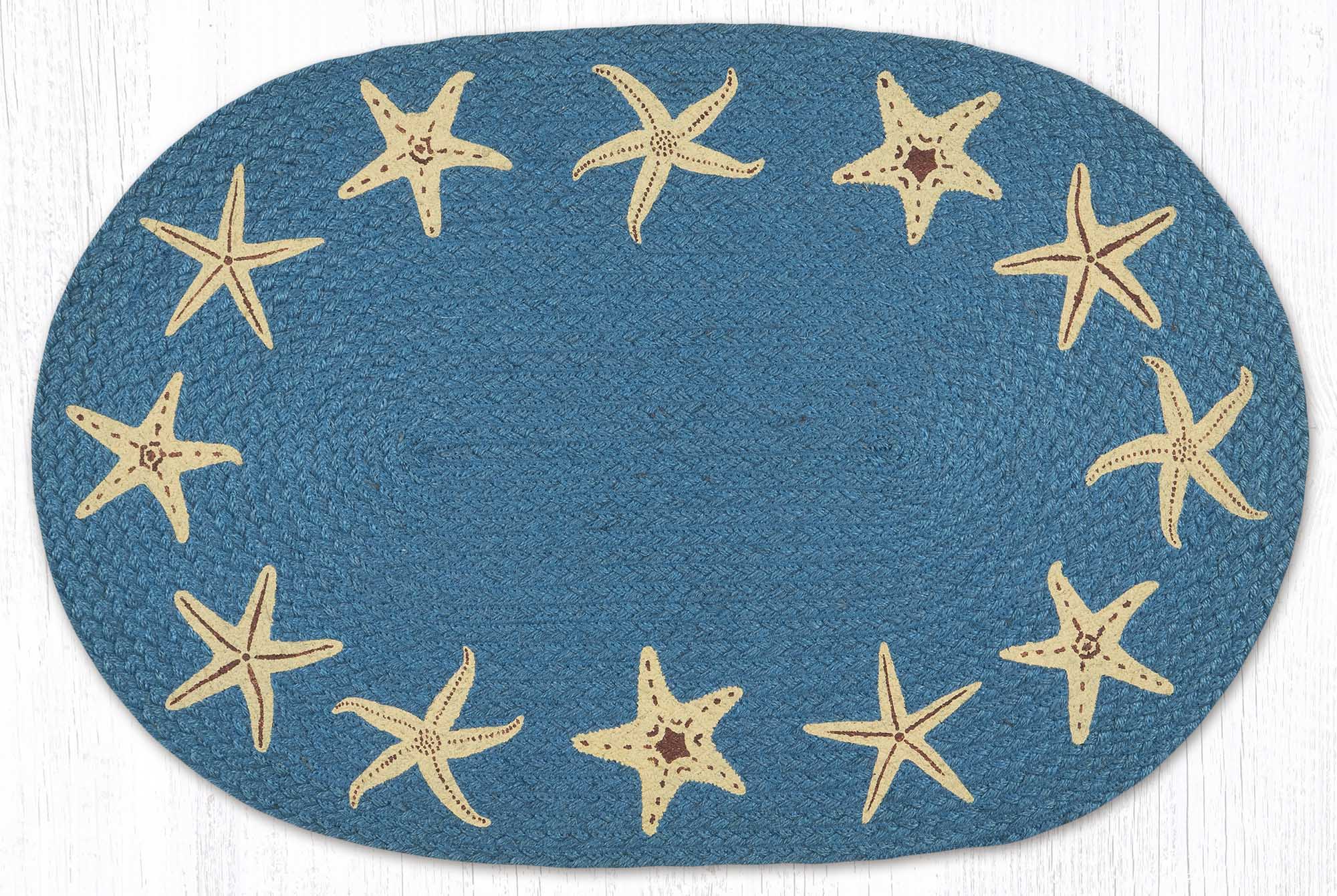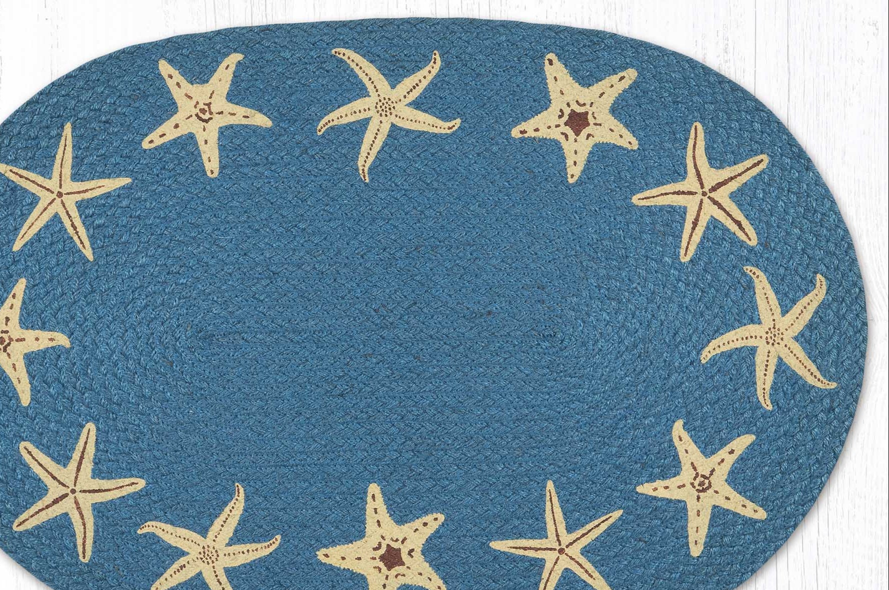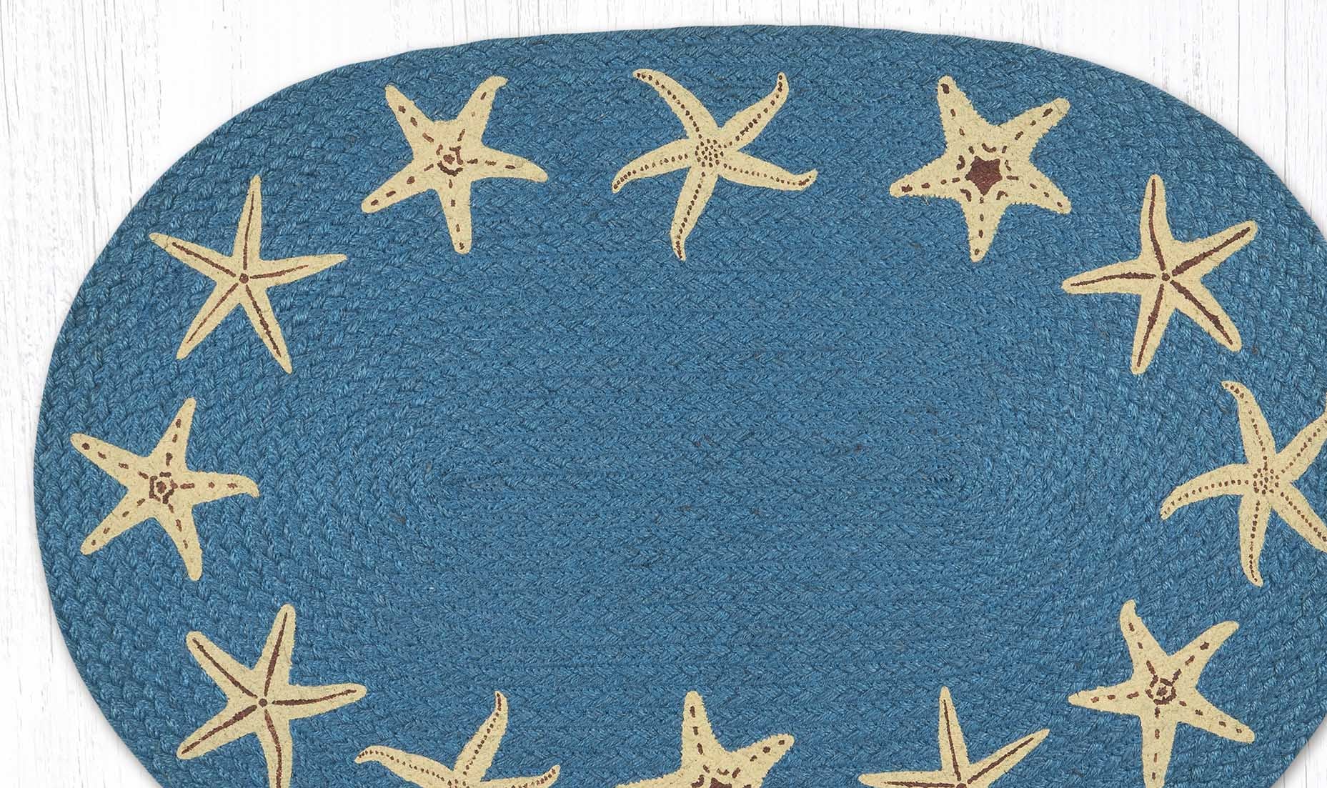 Earth Rugs Starfish Oval Patch Rug – 20x30 Hand-Braided Coastal Jute Mat with Nautical Sea Life Design