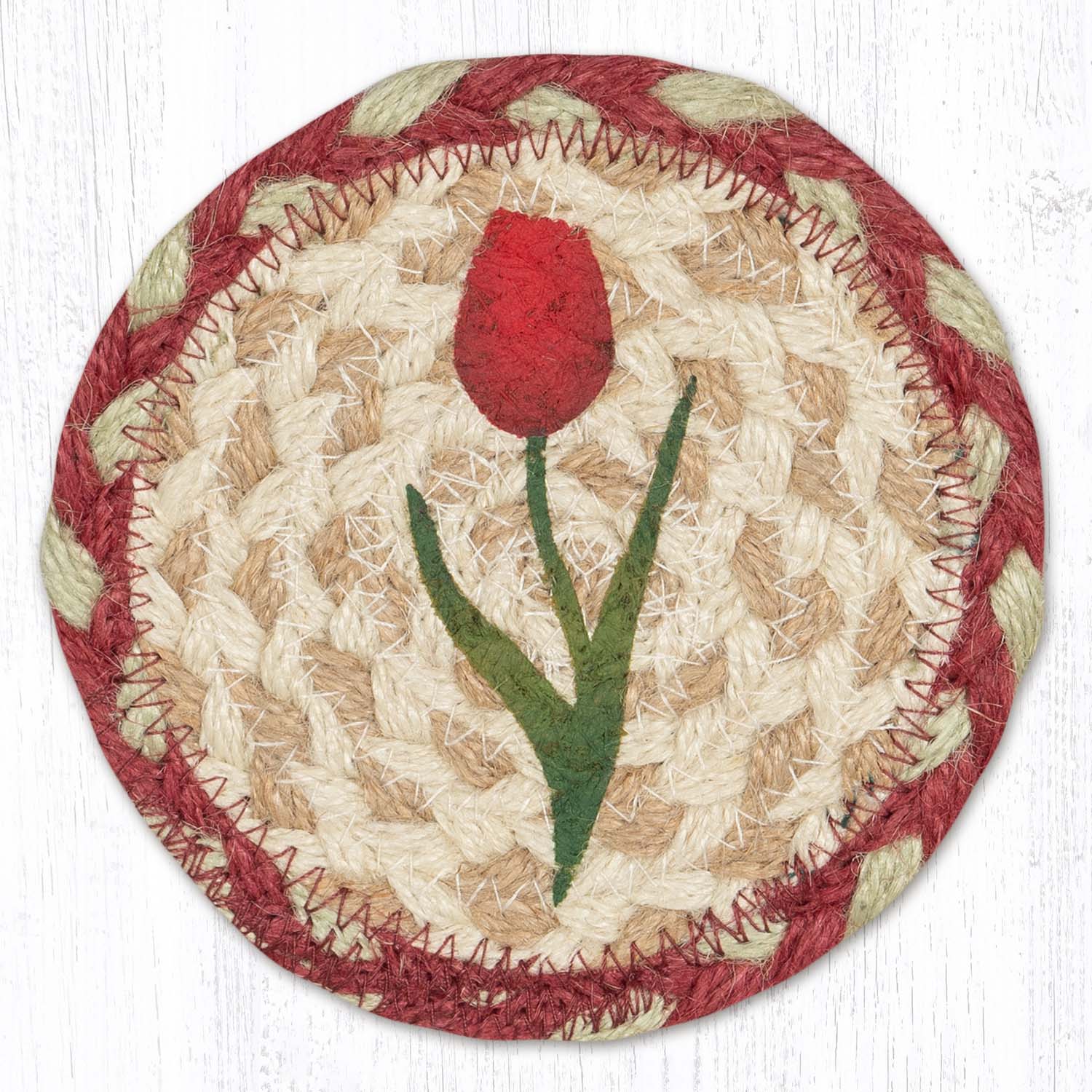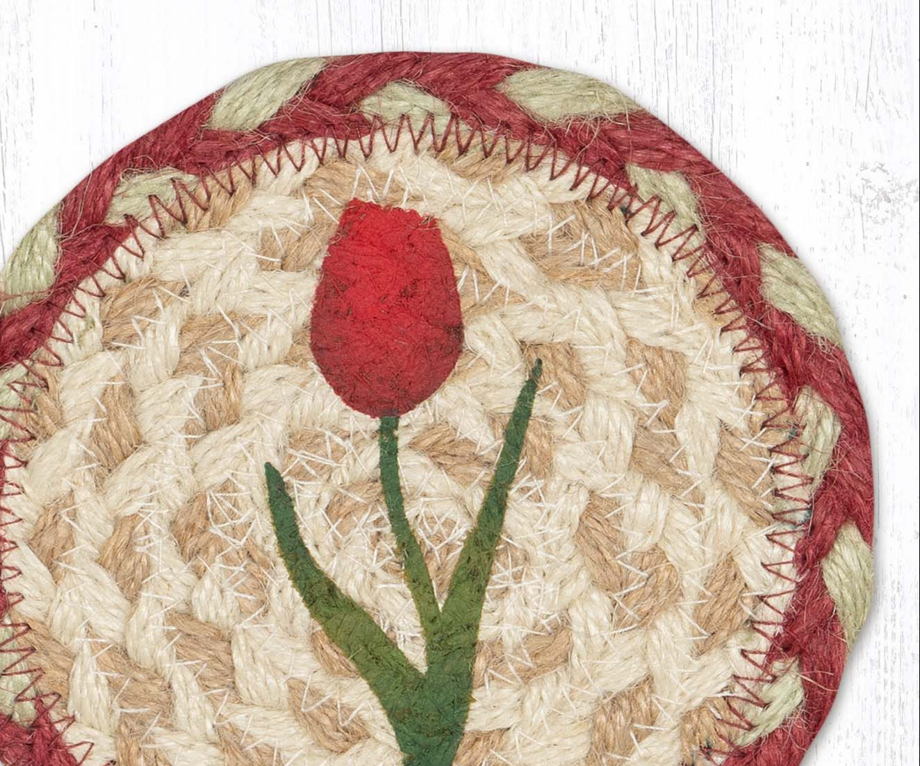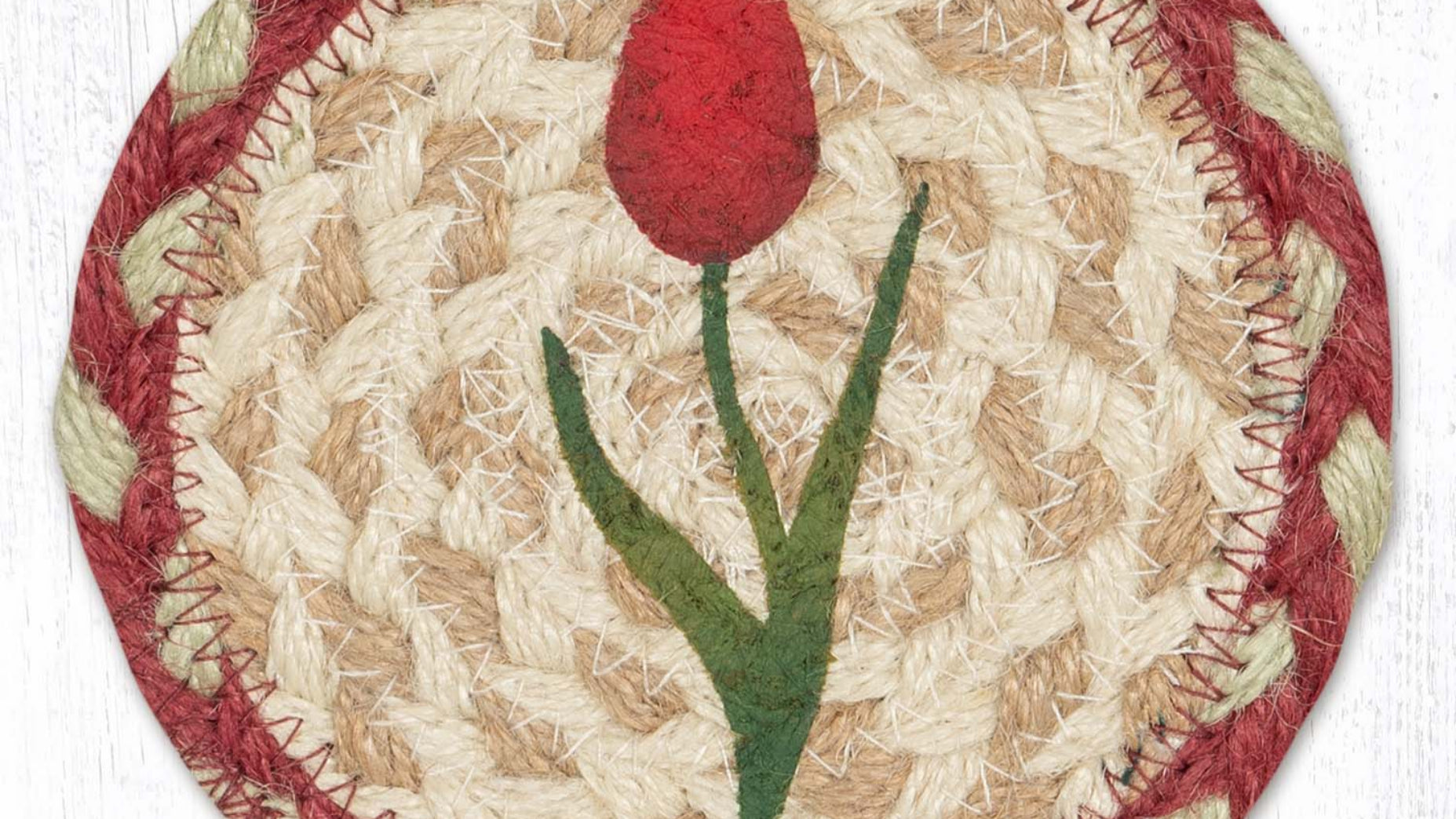 Celebrate the freshness of spring year-round with the Earth Rugs Tulips Round Coaster, a handcrafted 5"x5" piece made from 100% natural braided jute. Featuring a charming tulip bouquet print in cheerful, soft tones, this round coaster infuses any space with seasonal beauty and natural texture. Ideal for spring and summer decor or year-round floral themes, its eco-friendly build and delicate design make it a perfect fit for garden rooms, farmhouse kitchens, or sunlit breakfast nooks. Both decorative and functional, this floral accent protects surfaces while adding a joyful botanical touch.