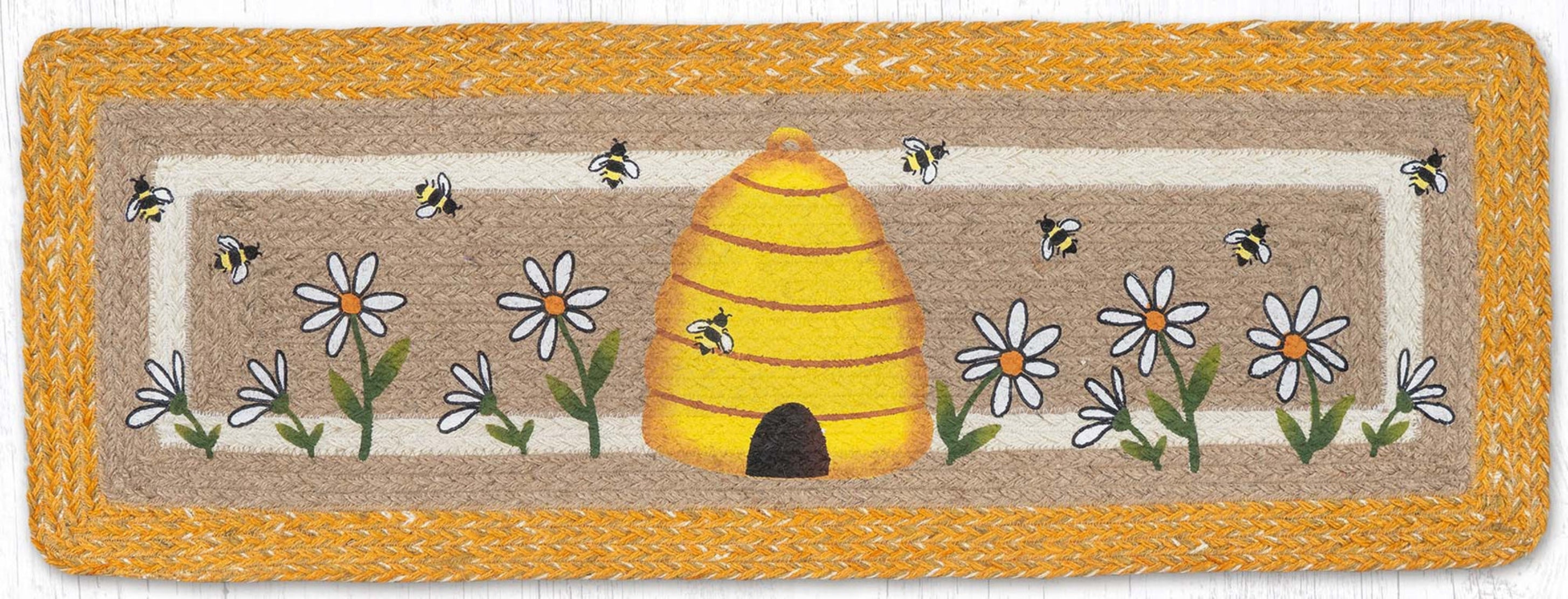 Oblong Printed Jute Table Runner 35" – Hand Stenciled by Suzanne Pienta by Earth Rugs