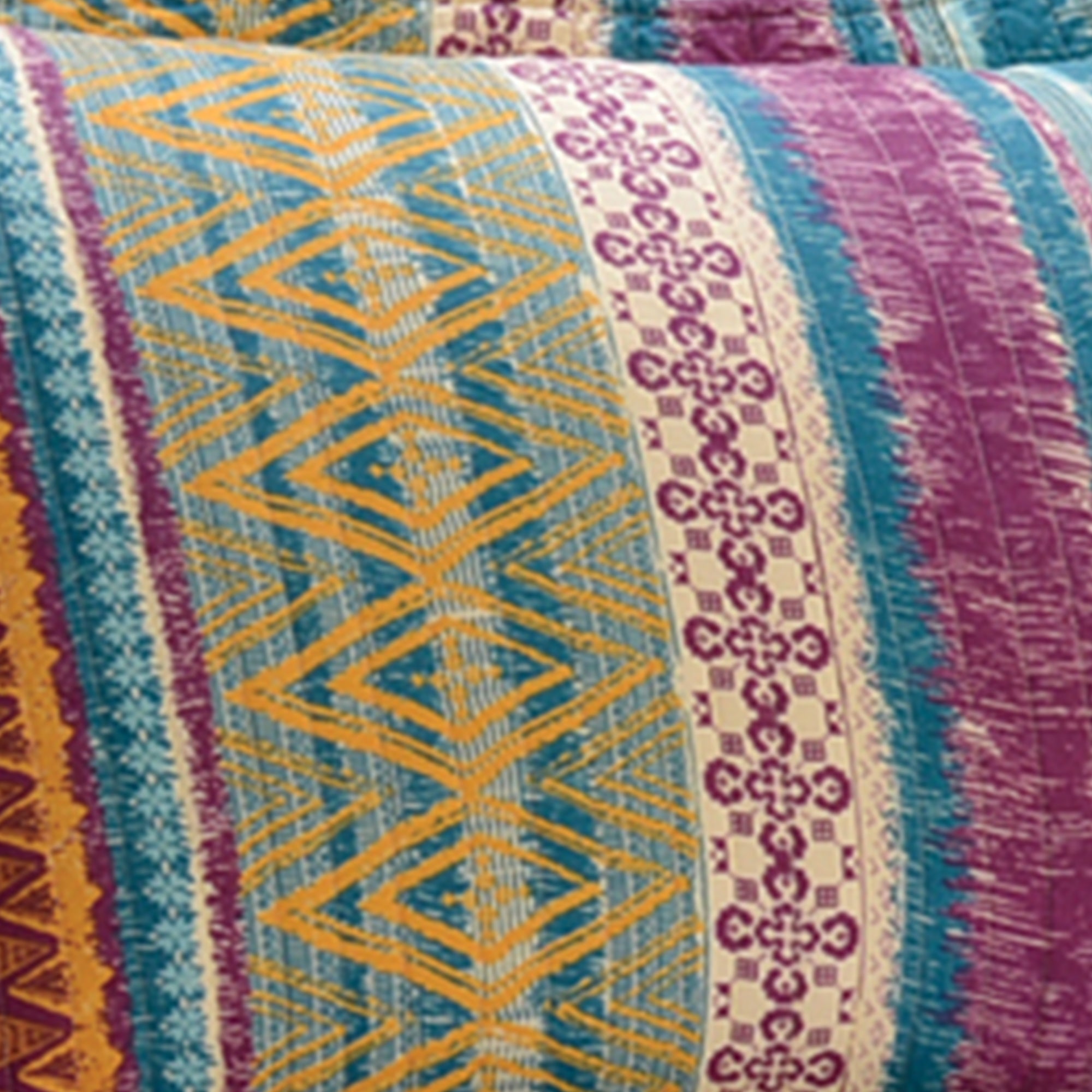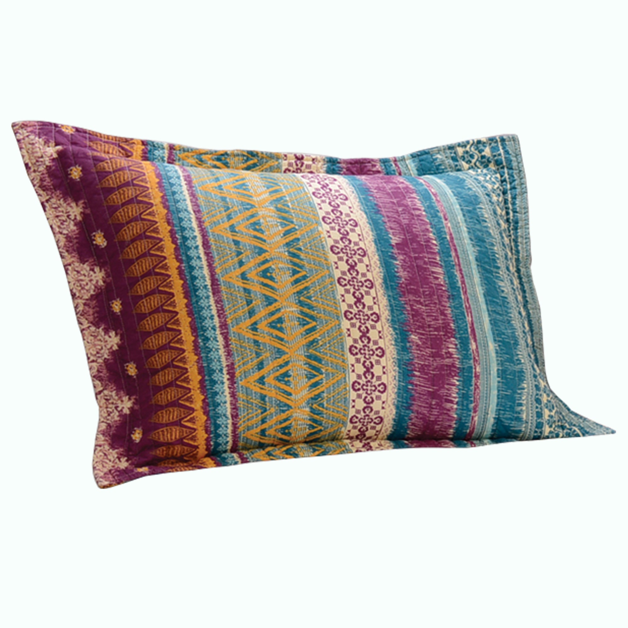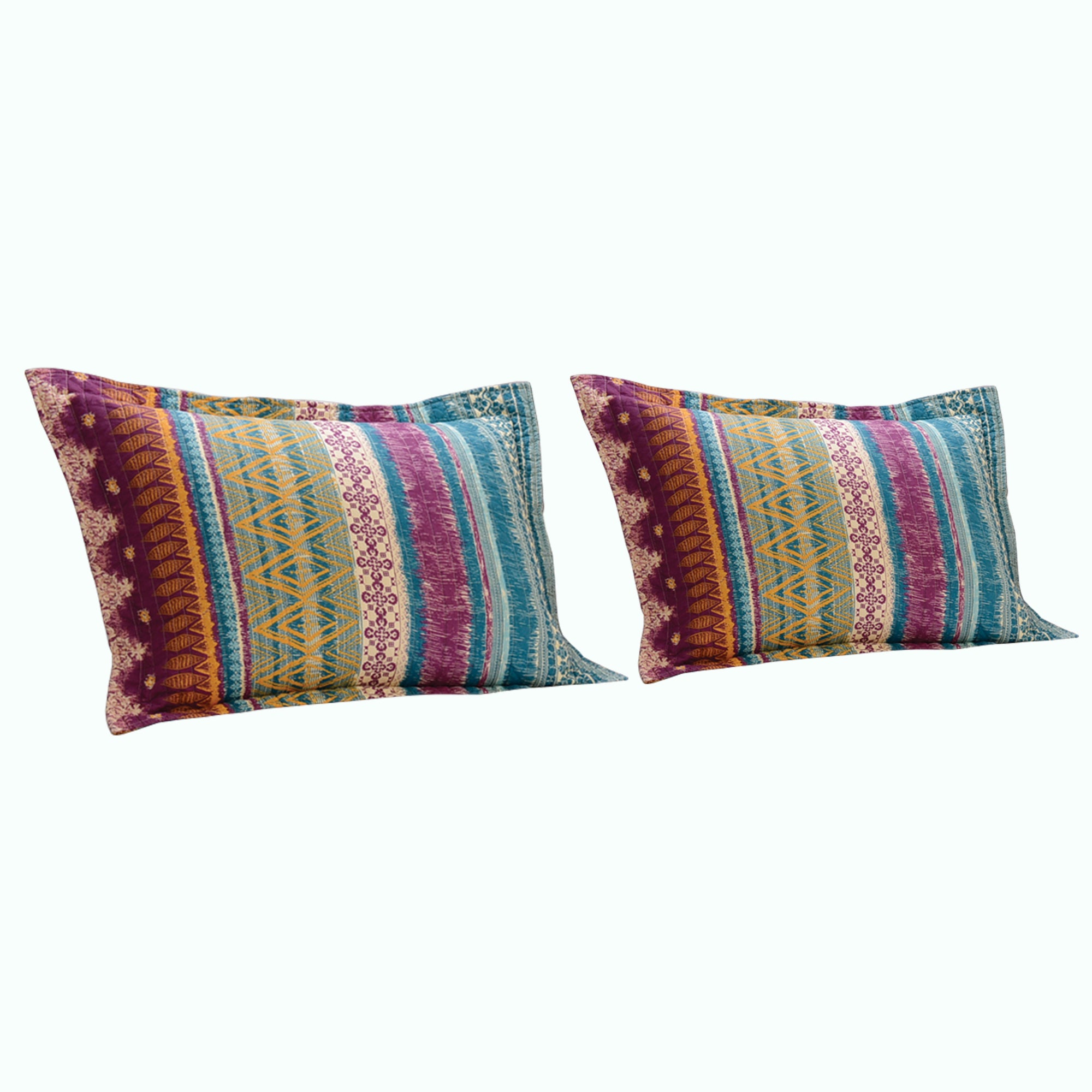 Create a modern and stylish statement by bringing in this standard size Quilted Pillow Sham in colorful shades of pink, blue and yellow. Crafted from cotton, It`showcases beautifully designed native print pattern, featuring an envelope opening on the reverse.