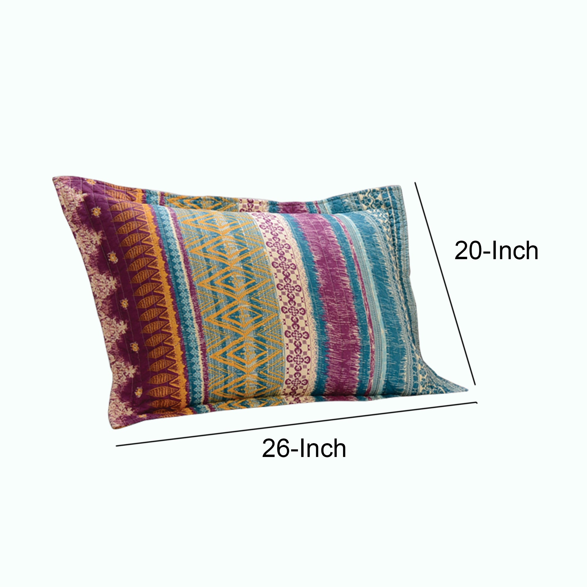 Benzara BM42353 26 x 20 Cotton Filled Standard Sham with Tribal Motif Print, Multicolor