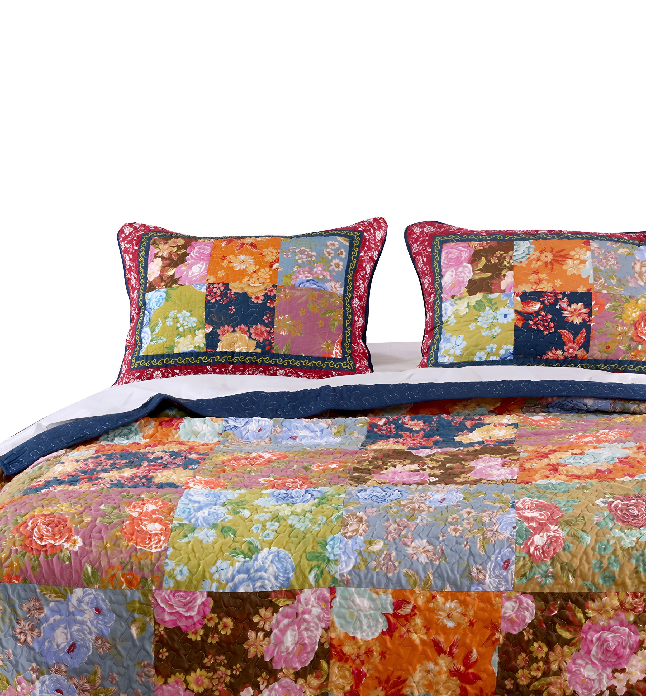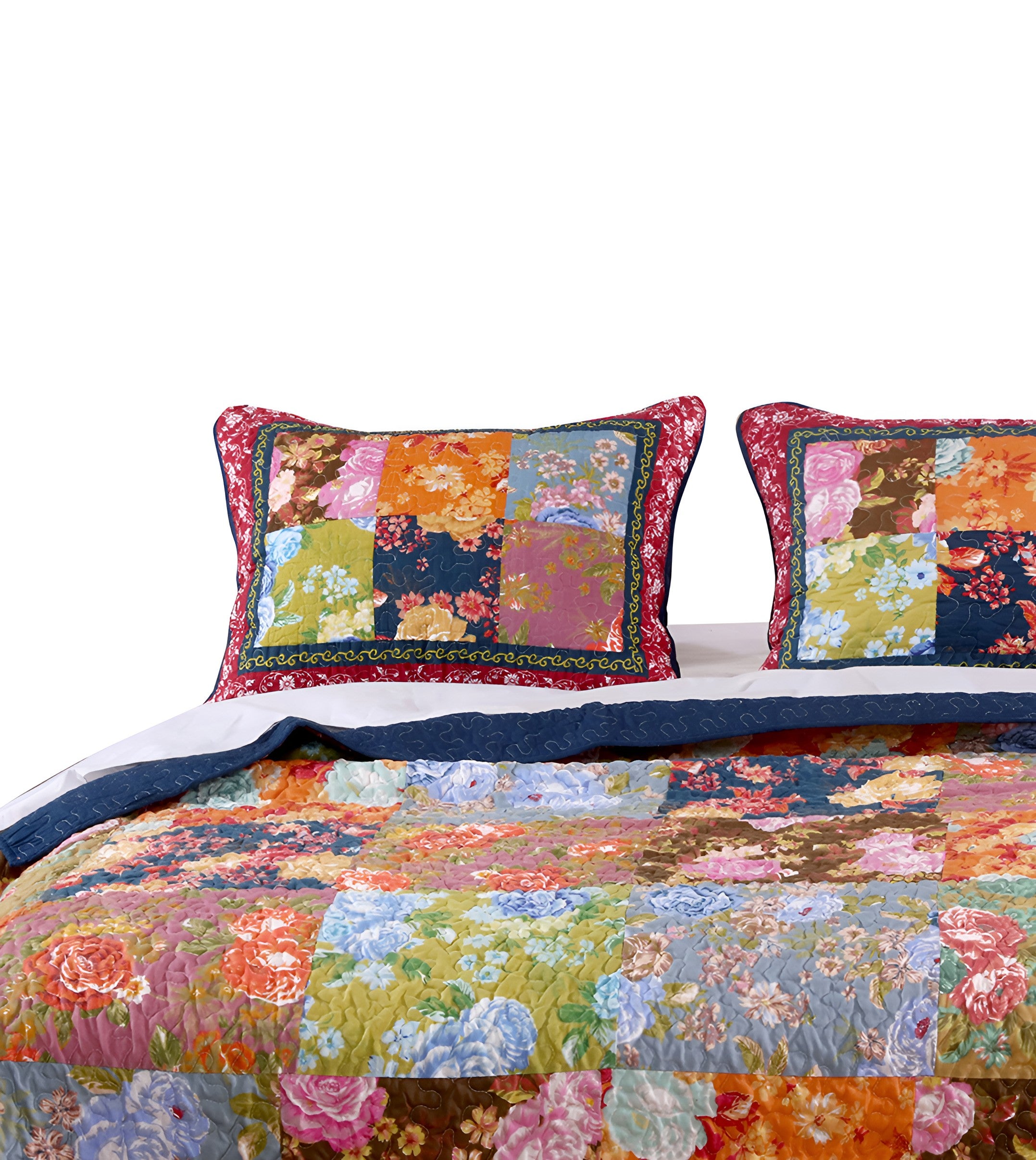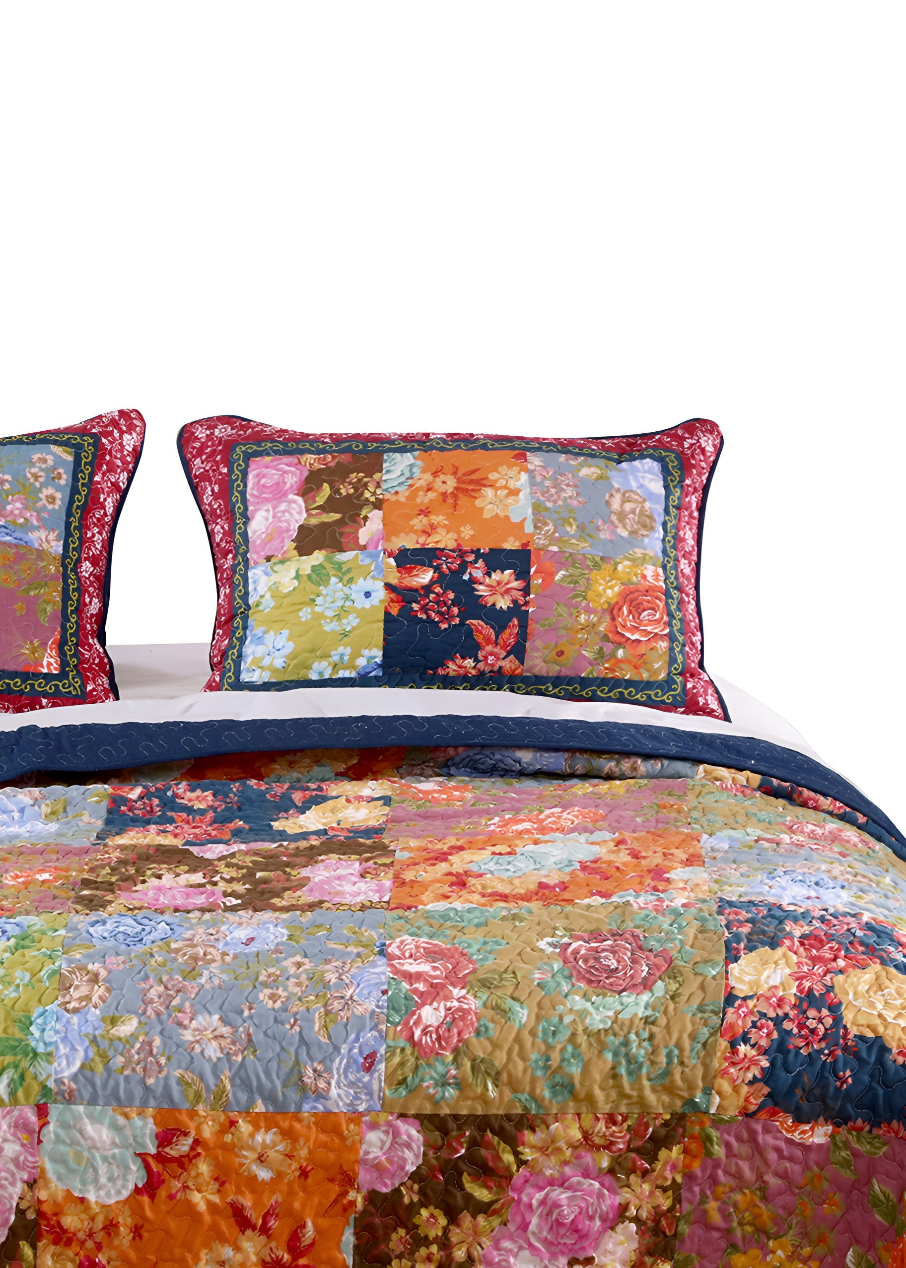 Greenland Home Fashions Desiree Multi Bold Floral Patchwork Reversible Design Sham