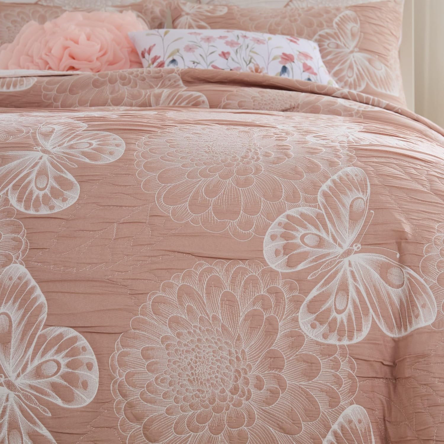 Made from soft, durable materials, the Mariposa Coverlet Set is easy to care for with machine-washable convenience. Its elegant floral pattern and lightweight construction make it a versatile choice for enhancing bedroom comfort and aesthetics with a touch of timeless charm.