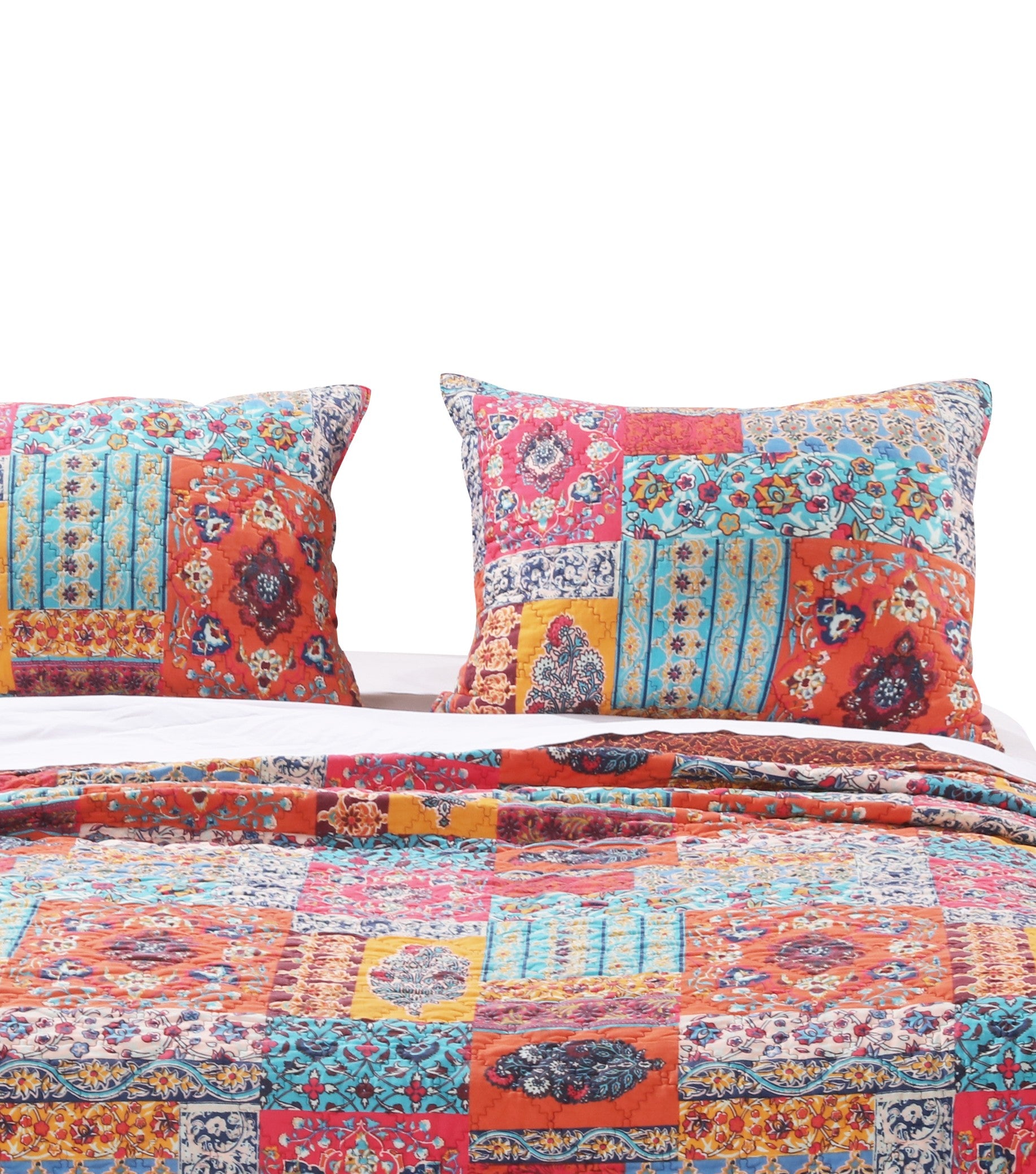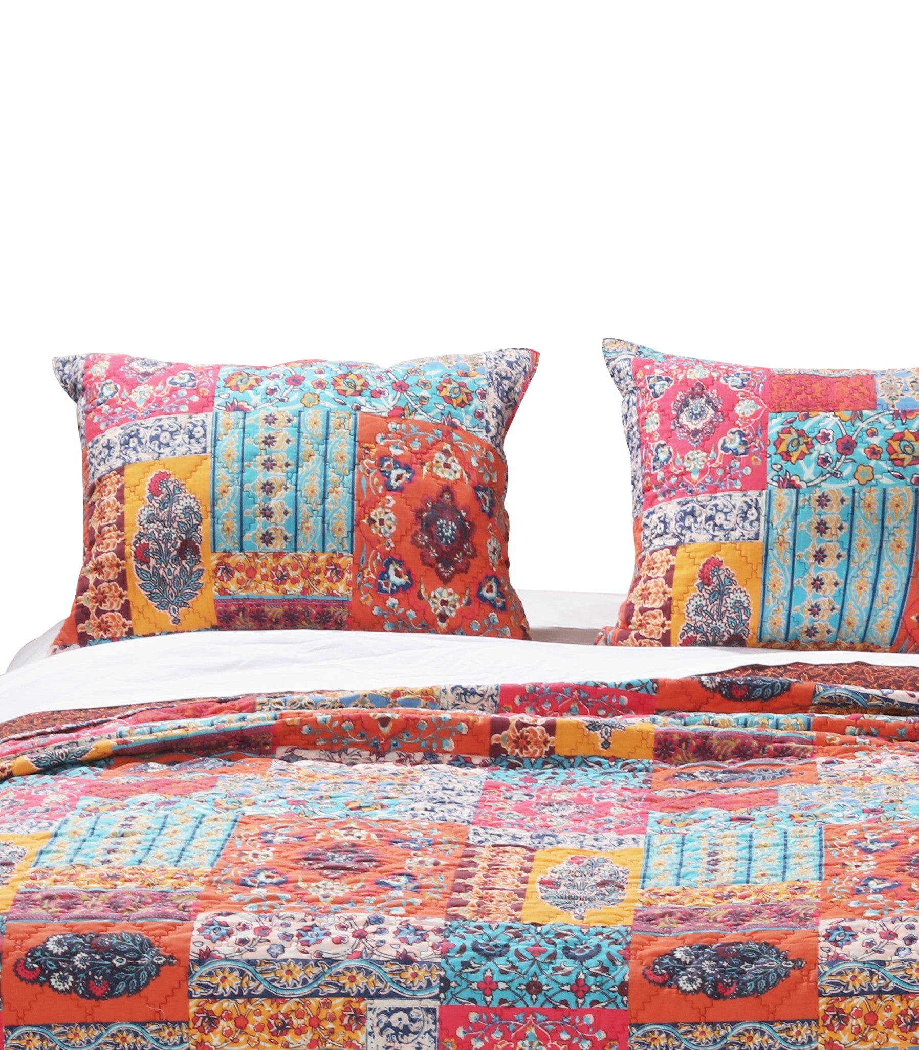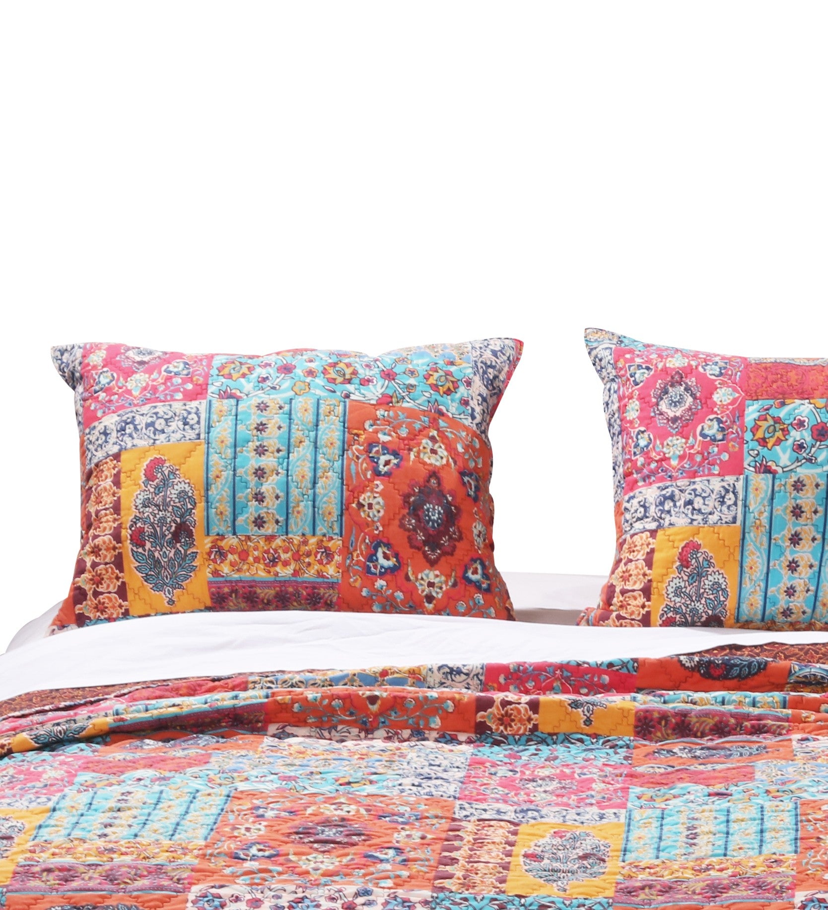 Indulge your inner bohemian with the Indie Spice quilted pillow sham, a vibrant celebration of global artistry and bold color. Featuring eclectic motifs from around the world in rich, saturated tones, this sham instantly enlivens any bedding ensemble. It makes a striking standalone statement or a dynamic layering piece across multiple decor styles—boho, eclectic, or worldly chic.