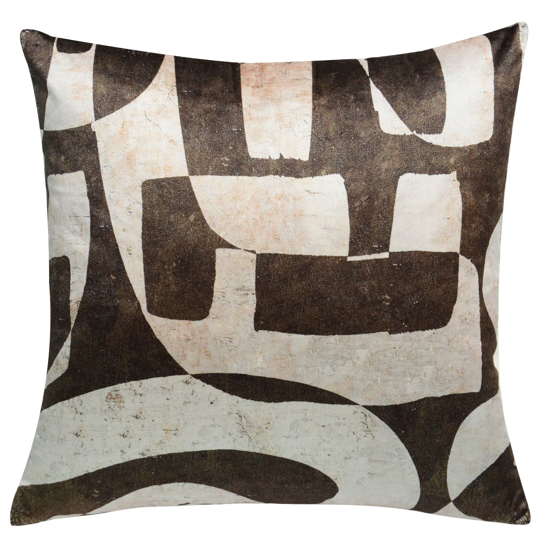 Abstract Square Pillow – 22" x 22" Forest Green and Beige Printed Polyester Accent Cushion By Cloud9