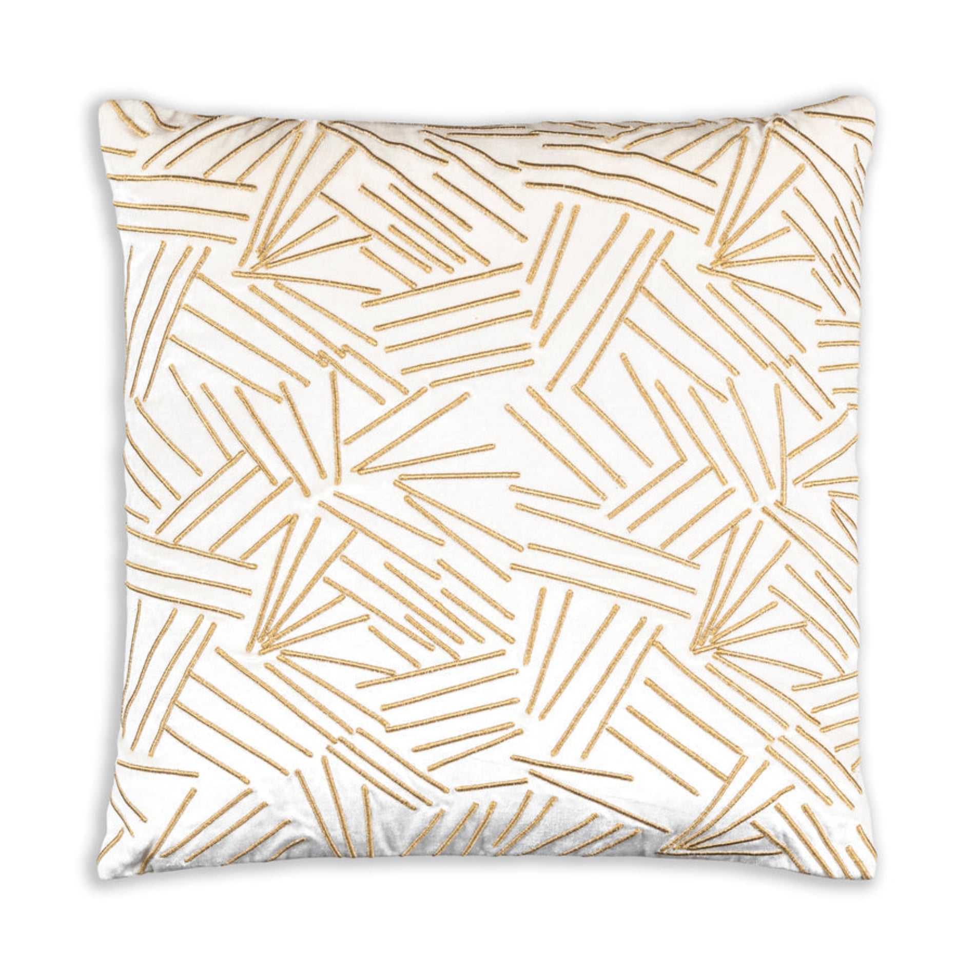 Embroidered Ivory Gold Pillow – Velvet 22x22" Decorative Accent Cushion for Sofa Styling by Cloud9
