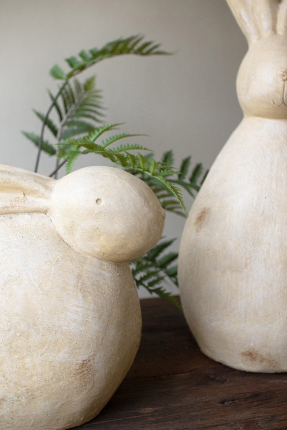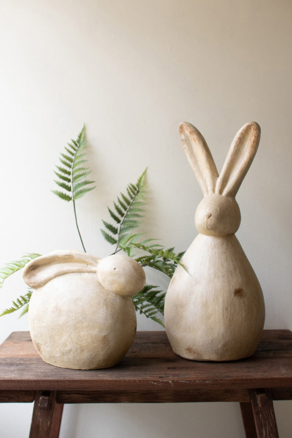 SKU - KAL-CHE1270Rabbit Sculptures, Distressed White Painted Resin Garden Decor, Set of 2