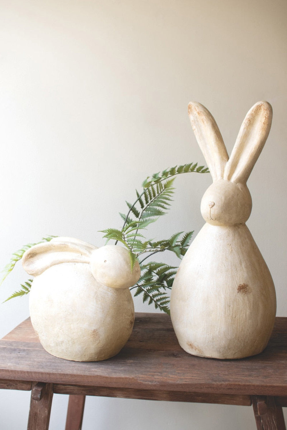 Rabbit Sculptures, Distressed White Painted Resin Garden Decor, Set of 2 by Kalalou