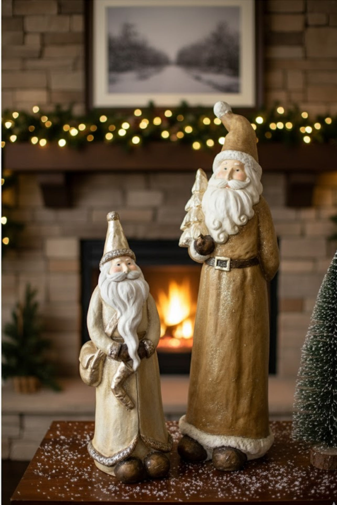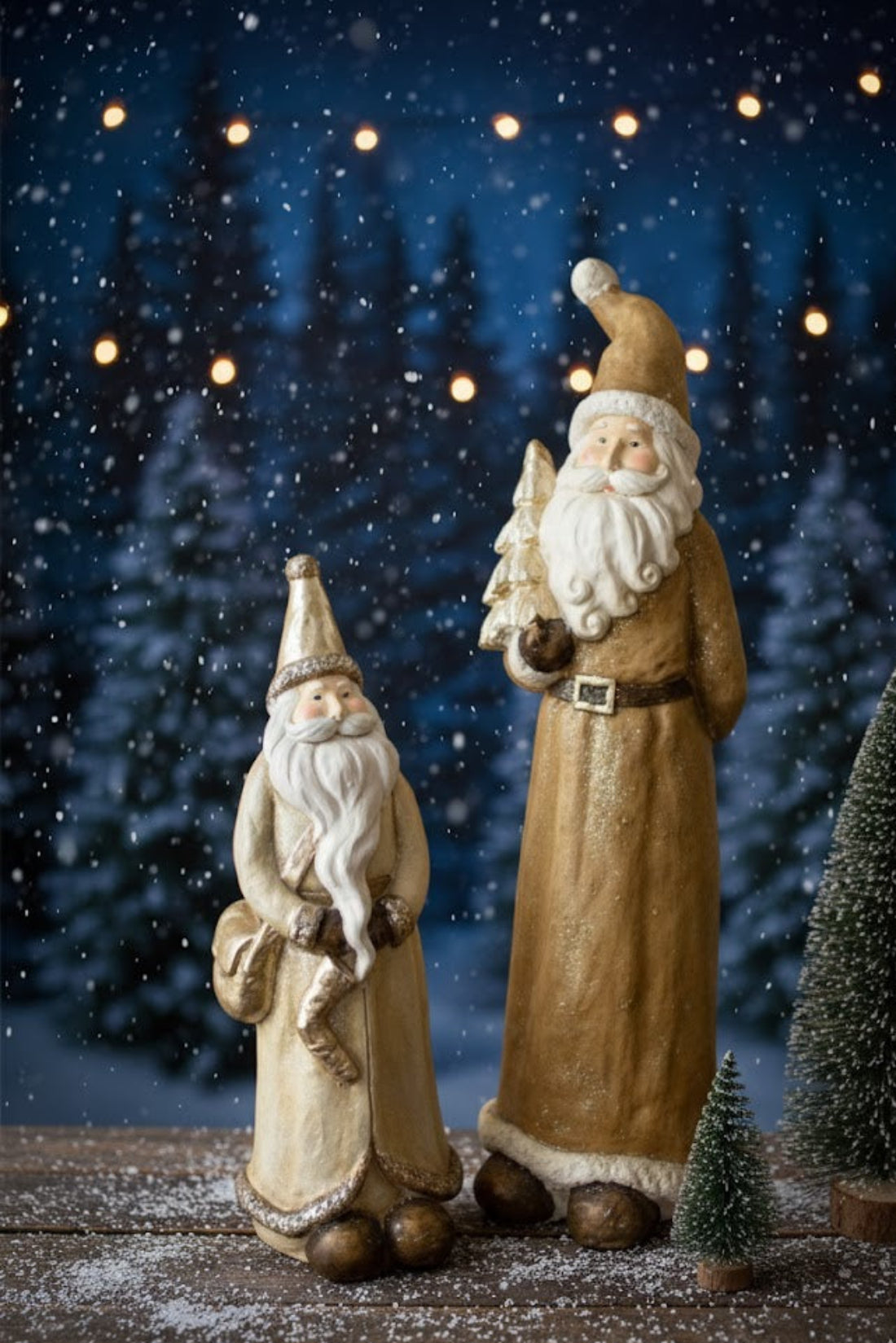 Resin Santa Figurines Gold Painted Set of 2 - 9.25 inch Holiday Decor by Kalalou