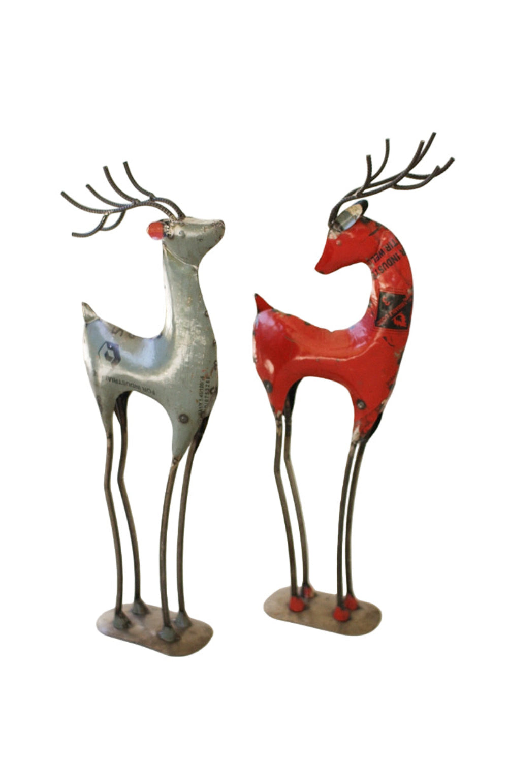 Handmade Recycled Iron Deer – Set of 2 Decorative Holiday Accents
