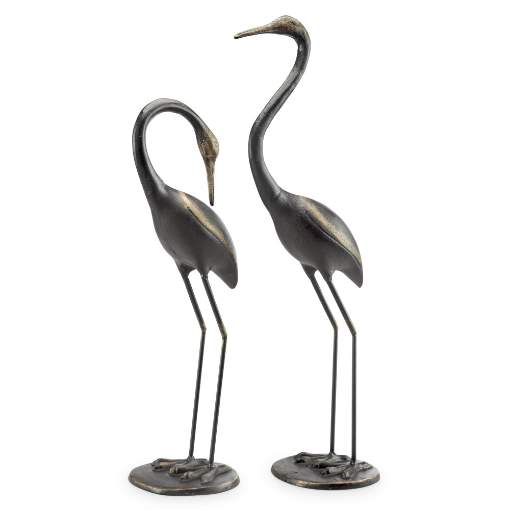 SPI Home Watchful Waders Garden Cranes Set of 2 – 28" Cast Iron Bird Sculptures with Rustic Finish, Outdoor Decorative Statues