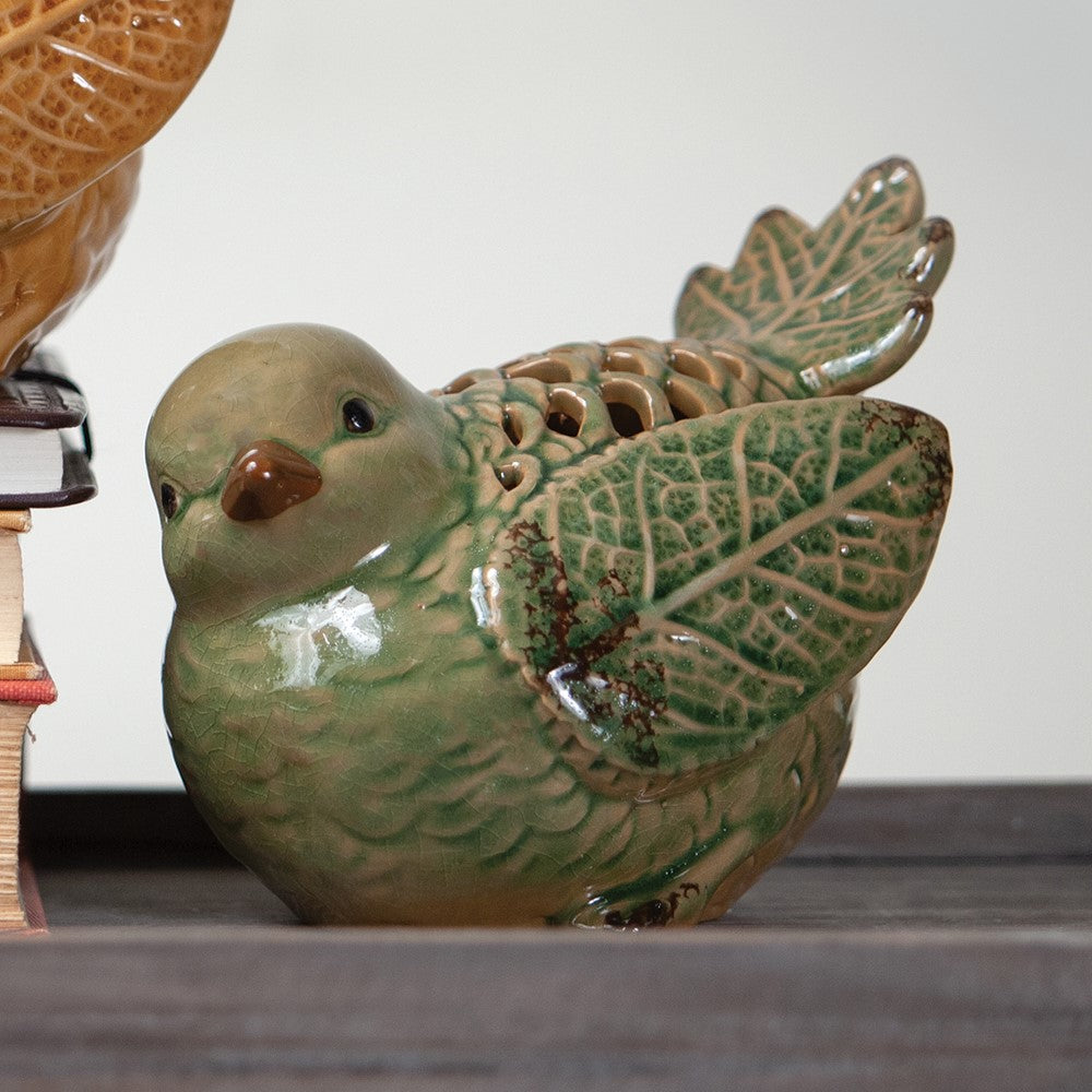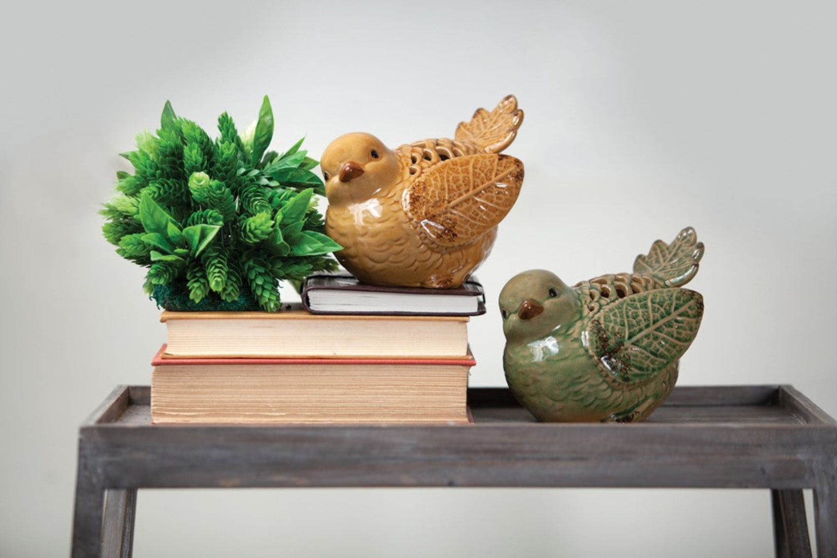 SKU - MWWICIJIOTwo-Piece Ceramic Bird Set Olive In Flight Figurines 5.71 Inch by Manual Woodworkers