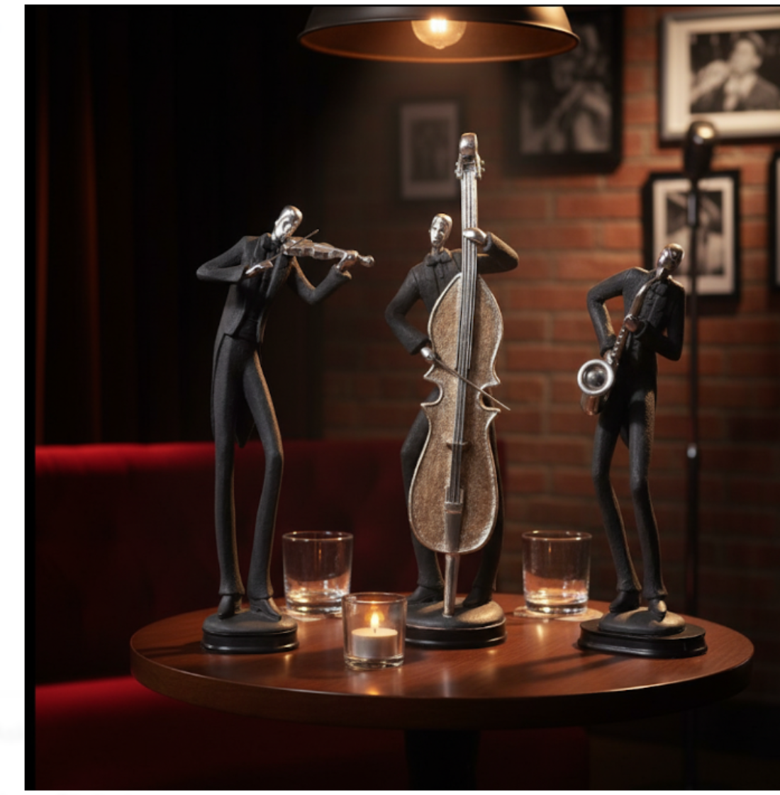 SKU - UT19061Musical Figurines Set – Abstract Musicians with Silver Instruments