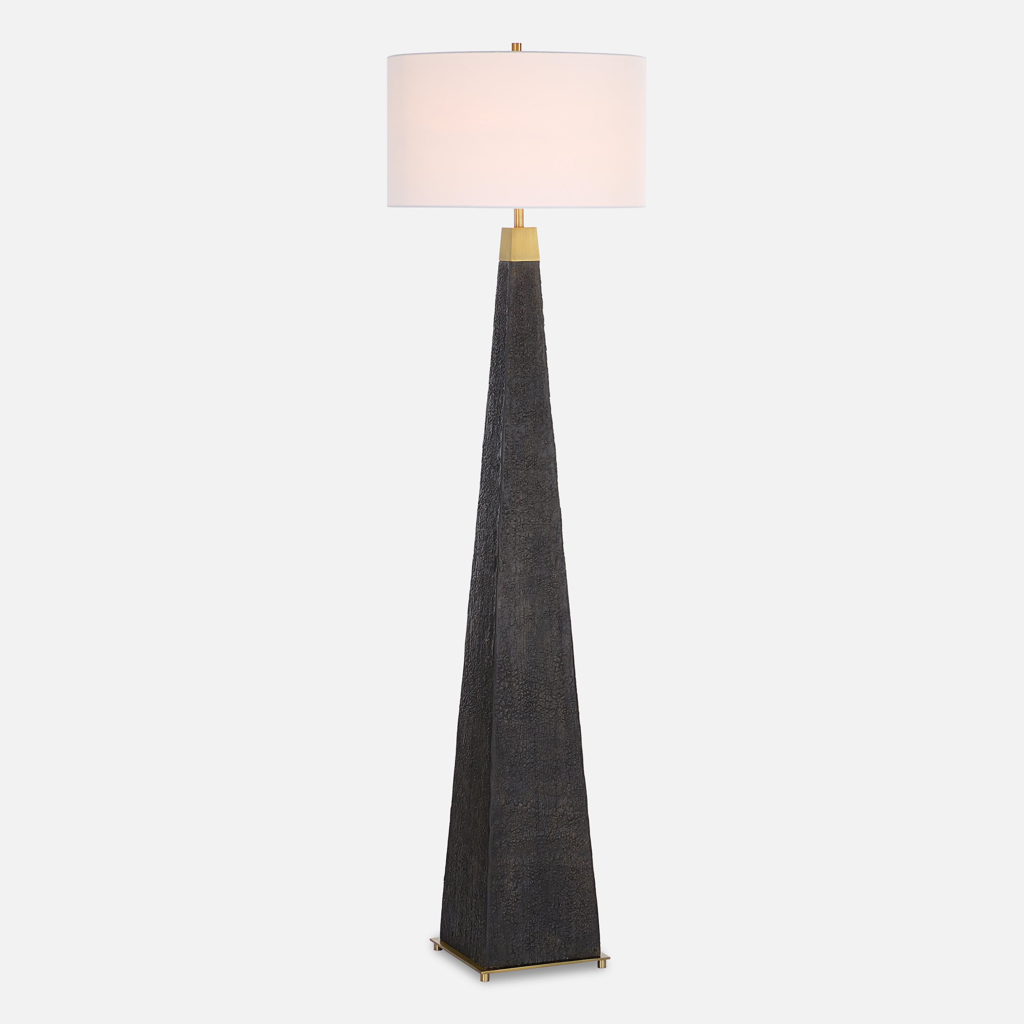 Uttermost 30469 Lathey Tapered Floor Lamp with Burned Wood Finish and White Linen Drum Shade