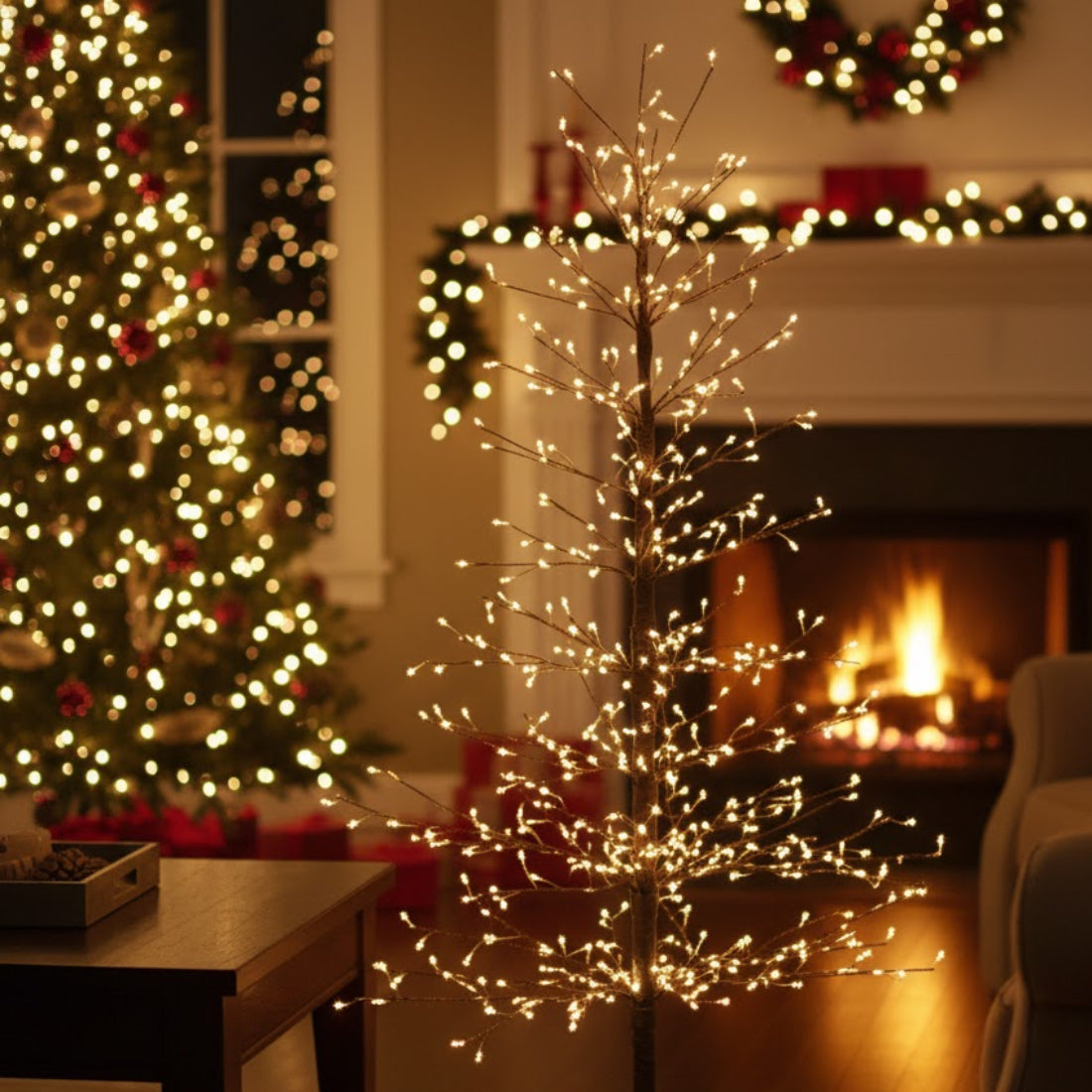 Elevate your seasonal décor with the Black LED Twig Tree 5'H, a bold and modern statement piece designed to captivate. Standing five feet tall, this decorative tree features a chic glittered black finish and 652 mini LED lights that create a warm, inviting glow. The bendable twig branches allow for personalized shaping, making it a standout accent for entryways, living rooms, floor displays, tabletops, or event décor. Crafted with a durable iron frame and UL plug-powered design, this illuminated tree blends seamlessly into both contemporary and traditional settings. Whether used for holiday decorating or year-round ambiance, its striking height and elegant shimmer add sophisticated charm to any space.