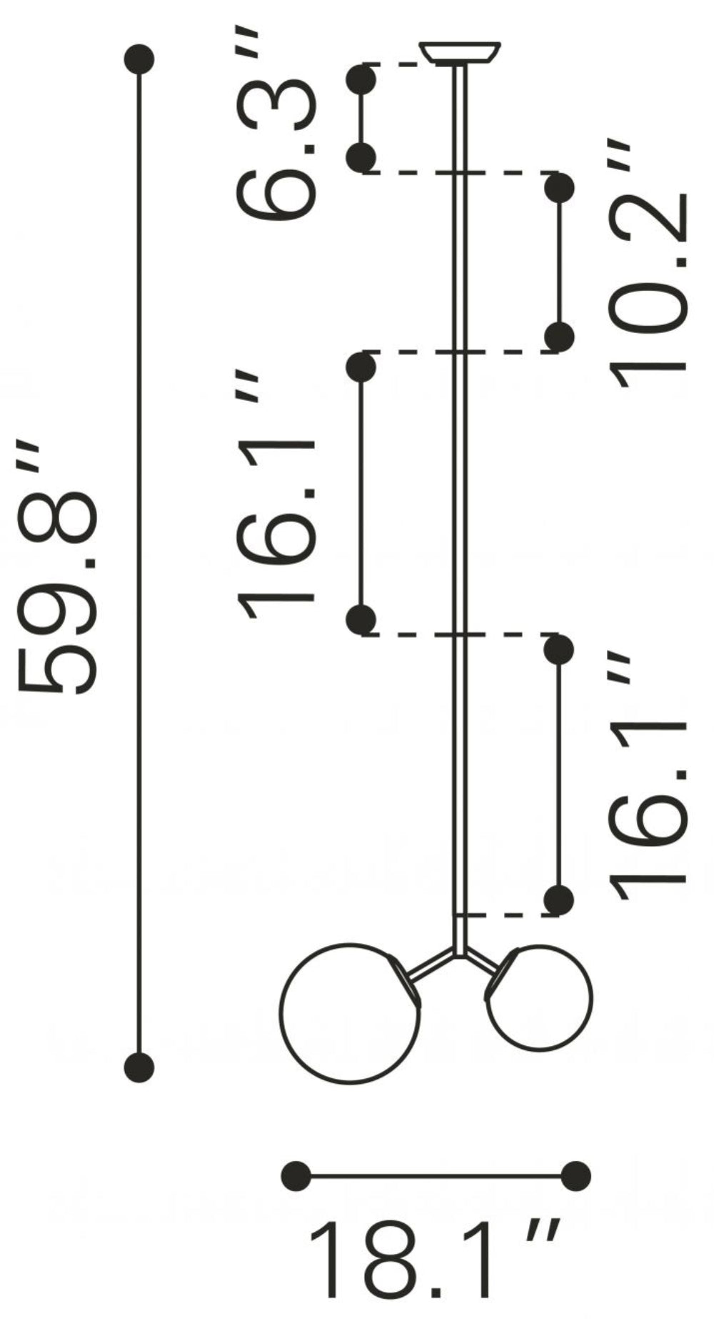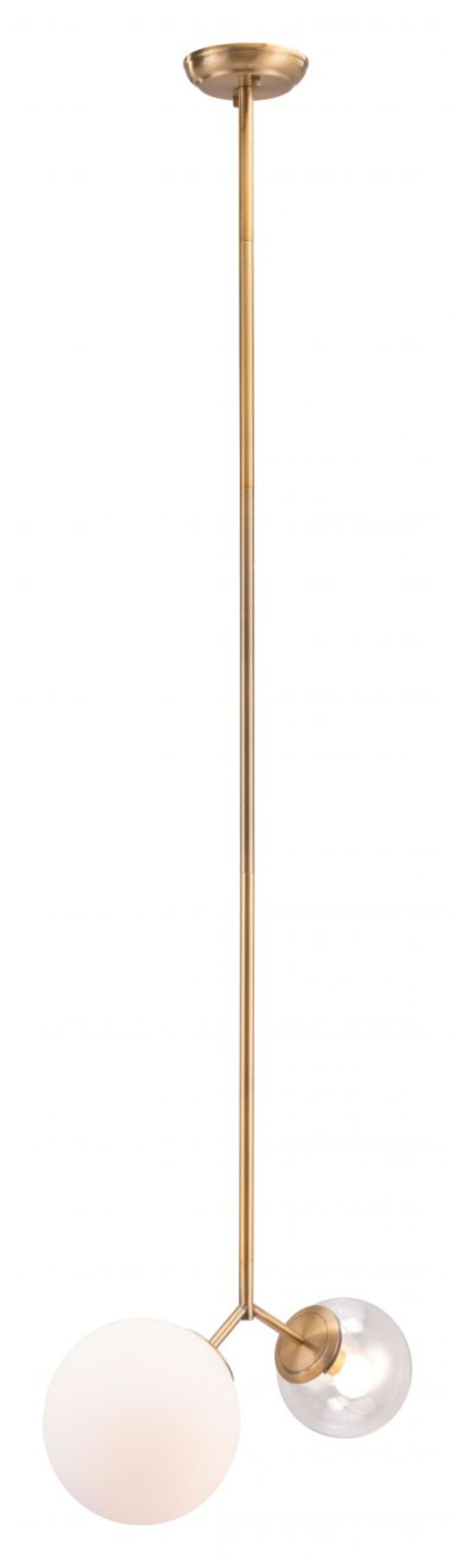 Elevate your space with the Zuo Modern Constance Ceiling Lamp, a perfect blend of high European modern style and urban minimalism. Crafted with a brass-plated steel frame and frosted clear glass shades, this contemporary ceiling lamp offers elegance and versatility for any room. Measuring 59.8" H × 18.1" W × 7.9" D, the lamp features an adjustable cord for customizable hanging height. Ideal for living rooms, dining areas, or entryways, its sleek design brings a sophisticated glow and timeless aesthetic, enhancing both modern and transitional interiors.