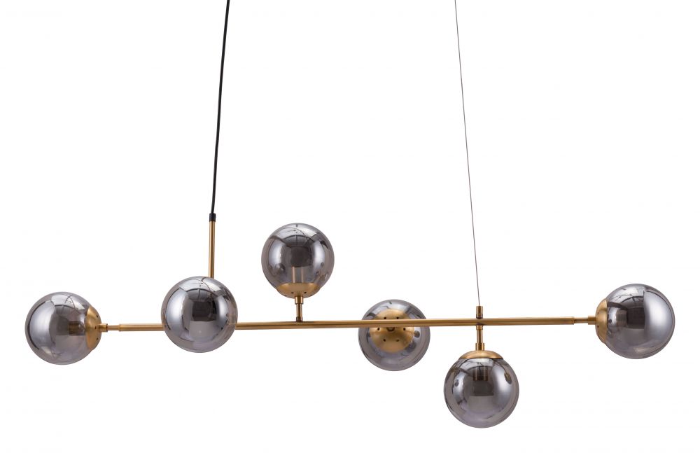Zuo Modern Gisela Ceiling Lamp Brass with Tinted Glass Shades and Deco Look 137.4"H x 51.2"W x 17.7"D