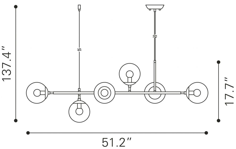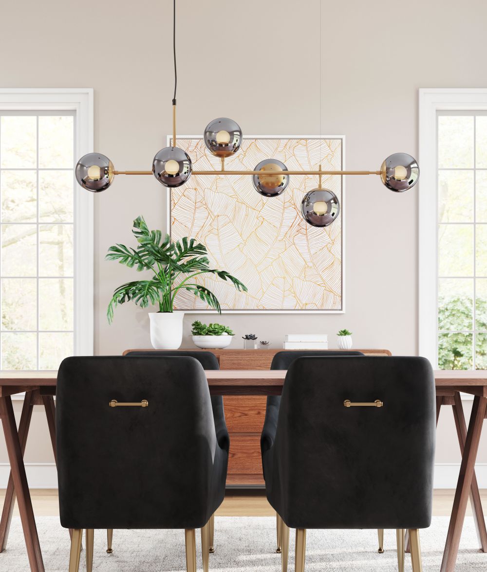 The Zuo Modern Gisela Ceiling Lamp is a bold fusion of modern style and art deco charm. Featuring a gold-plated steel frame and smoky tinted glass globes, this six-light fixture turns any room into a showpiece. Its large profile — 137.4 inches high, 51.2 inches wide, and 17.7 inches deep — makes it ideal for high ceilings, grand lobbies, modern kitchens, or luxurious dining spaces. Whether you’re enhancing residential interiors or upscale commercial venues, this UL-approved ceiling lamp provides sculptural sophistication and ambient brilliance.