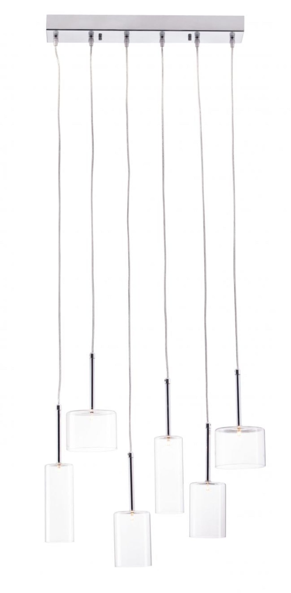 Hale Ceiling Lamp Clear with 6 Glass Cylinders Chrome Base 13"H x 21.7"W x 5.5"D