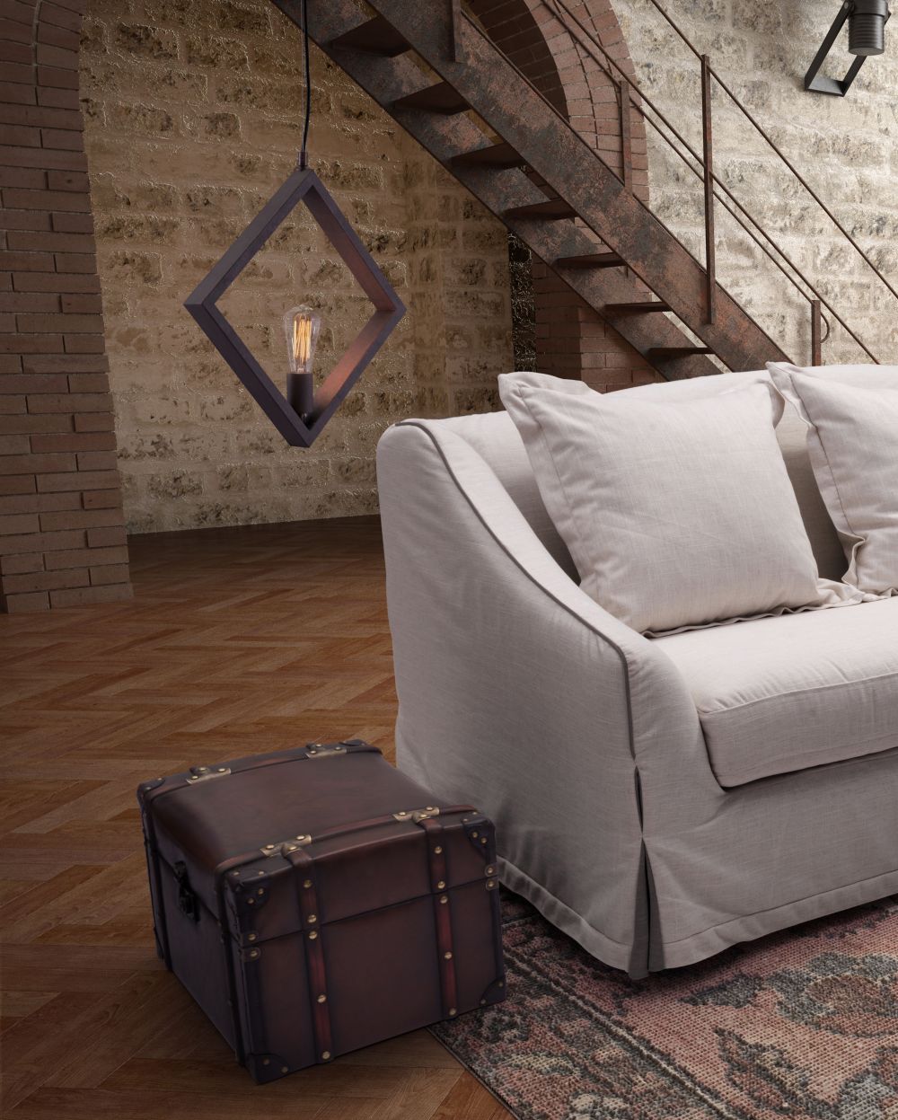 Elevate your space with the Rotorura Ceiling Lamp by Zuo Modern, designed to create an eye-catching industrial silhouette. Its diamond-shaped frame in distressed rust-painted steel surrounds a filament-style bulb for a warm, ambient glow. Measuring 17.7" H x 17.7" W x 2" D, it fits perfectly in entryways, dining areas, or living spaces.