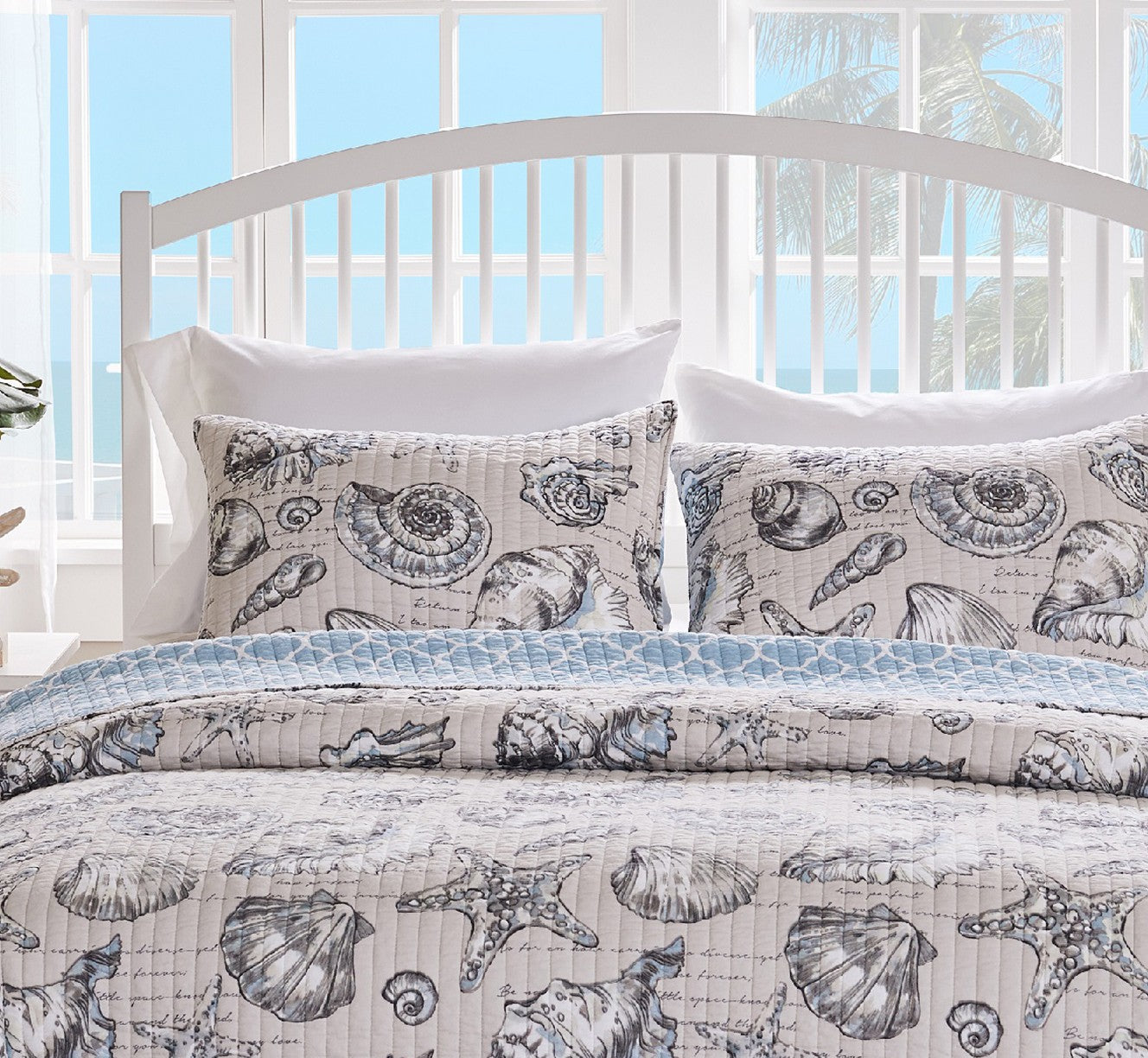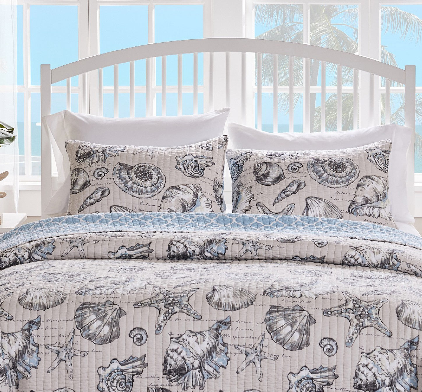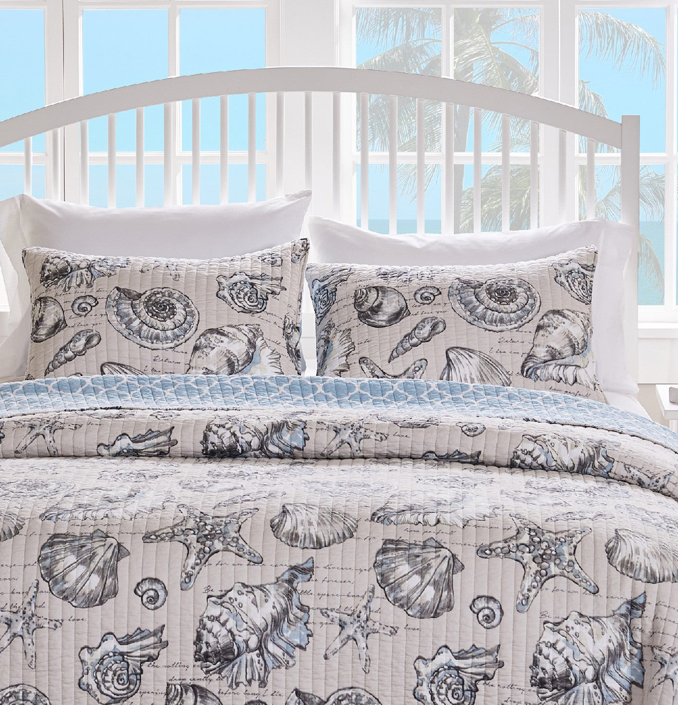 Refresh your space with coastal charm using the Cruz Linen Sham. Featuring an elegant blend of seashell illustrations and dreamy script on a soft linen-tone background, this sham evokes the calm and serenity of ocean breezes and beachside getaways. The color palette of blue, alabaster, taupe, white, and charcoal brings a subtle sophistication to any bedroom.