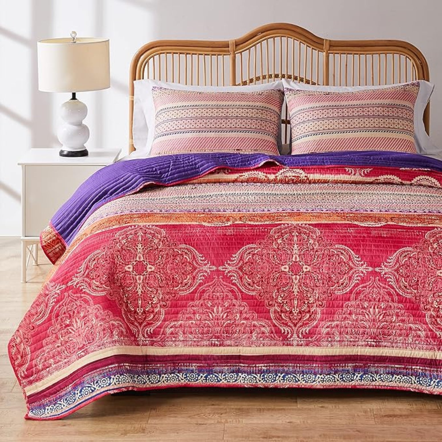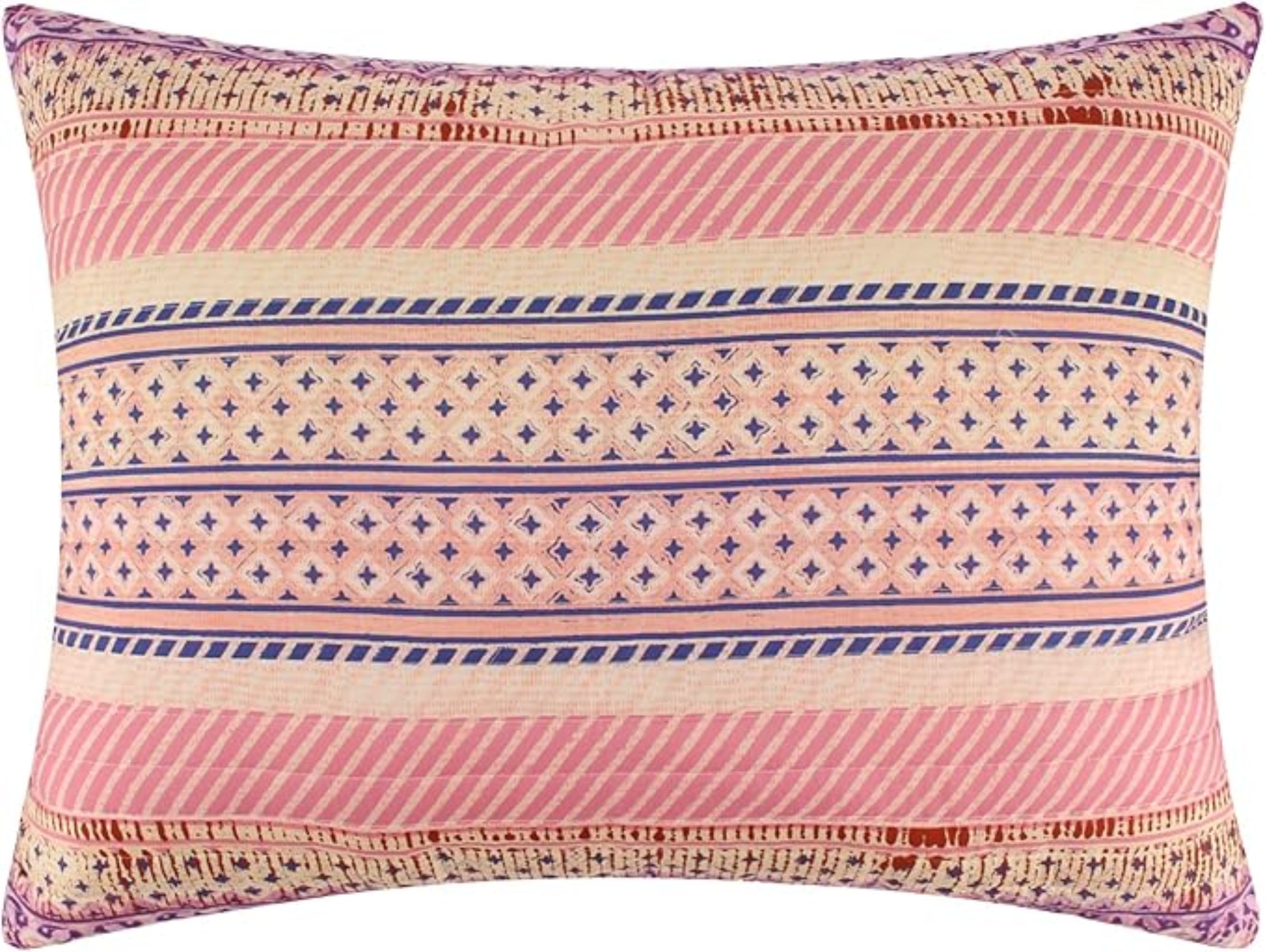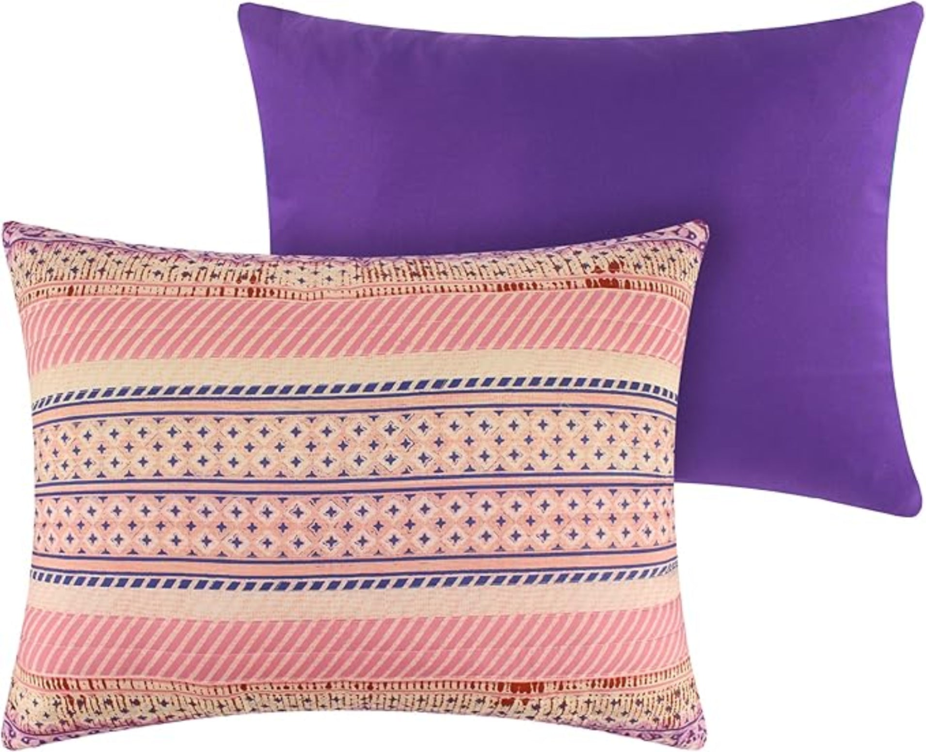 Brighten your Boho. Aurora pillow shams combine paisleys, stripes and medallions in a vintage look that inspires your creative spirit. Reverses to a rich coordinate solid color. Zipper along the side of each sham holds your pillow in place and stays out of the way so you can flip over your shams for a whole new look on your bed. Channel quilted for loft and durability. 100% microfiber face and back with 100% polyester fill. Dimensions: Standard sham measures 20x26". Machine Wash. Imported.