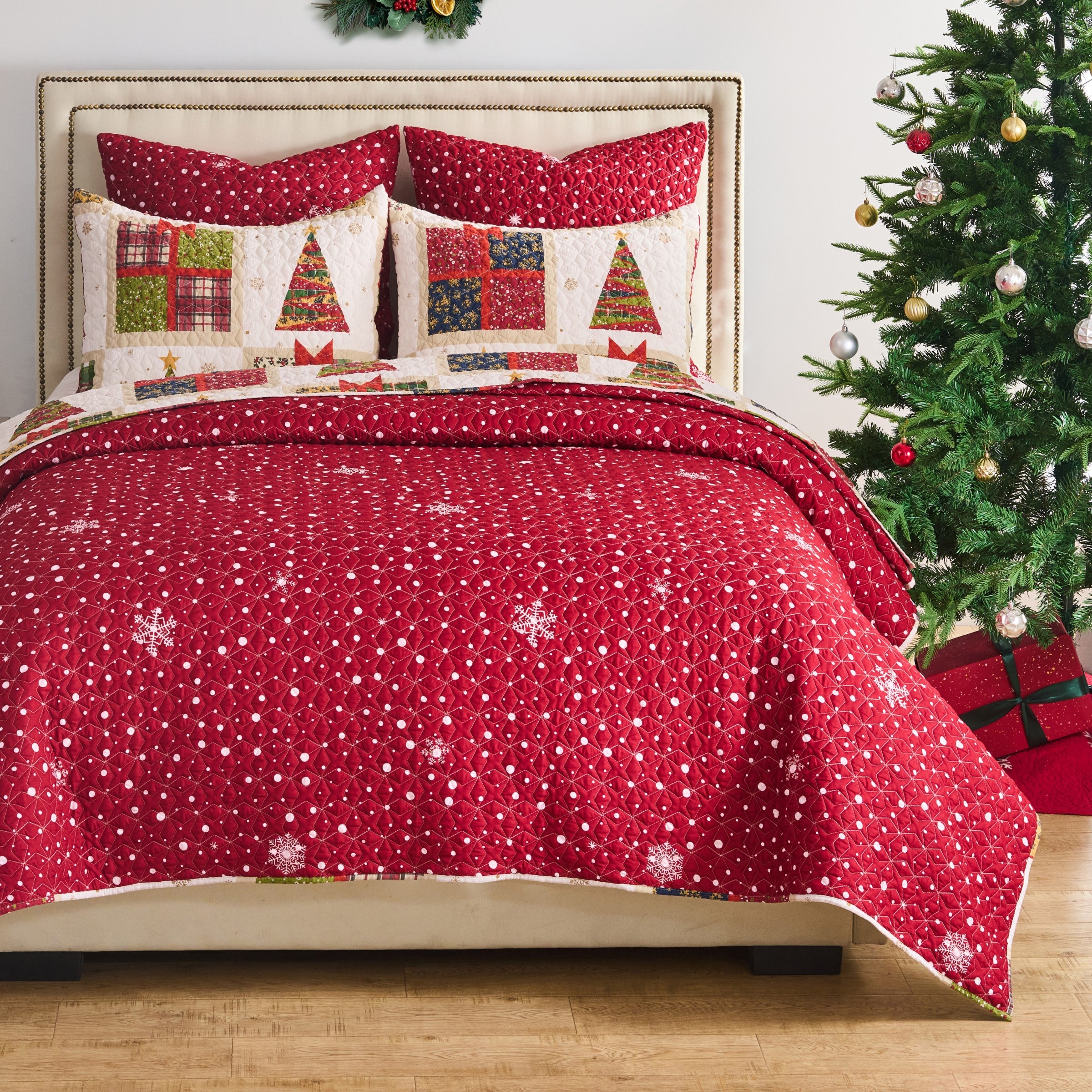 Celebrate the season with the Greenland Home Fashions Deck the Halls 2-Piece Quilt Set, designed to bring warmth and charm to your holiday decor. This Twin/XL size set includes a beautifully stitched quilt (68x88 inches) and a matching pillow sham, perfect for adding a festive touch to your bedroom or guest room. Crafted from soft microfiber with intricate quilted stitching, it features a classic holiday motif in red, green, and white tones that evoke cozy winter vibes. Its lightweight yet warm design makes it ideal for year-round comfort, while the reversible pattern adds styling flexibility.
