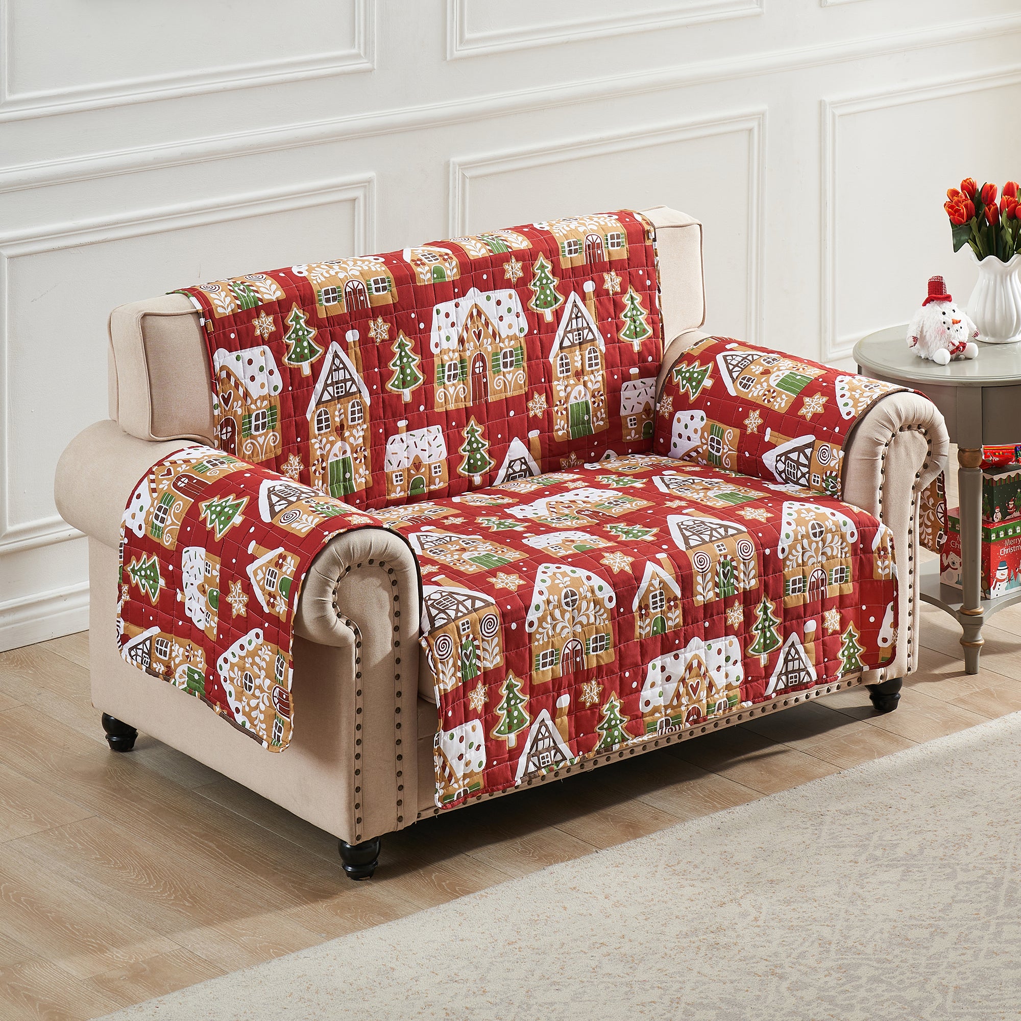 Greenland Home Fashions Gingerbread Lane Furniture Protector – Loveseat Cover in Festive Print