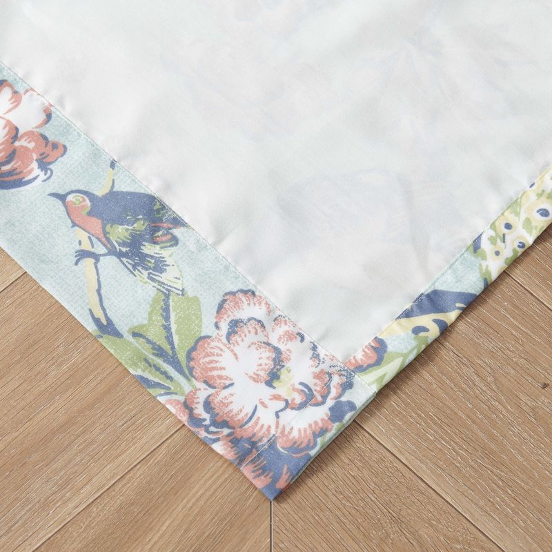 Paradise found. Surround yourself with the enchantment of an exotic garden of Eden. Pavona features songbirds, butterflies and peacocks among blossoming vines in a lush botanical setting. Lined with solid color fabric for increased privacy and sun protection, each 4-Piece curtain panel set includes two panels and two tie backs. Rod pocket design features three-inch opening along the top to accommodate most curtain rods for hanging. Dimensions: Each panel measures 84 inches long x 42 inches wide (x2) for total coverage area of 84 x 84 inches. Machine washable. 100% Brushed mcrofiber face and back (2 ply). Imported.