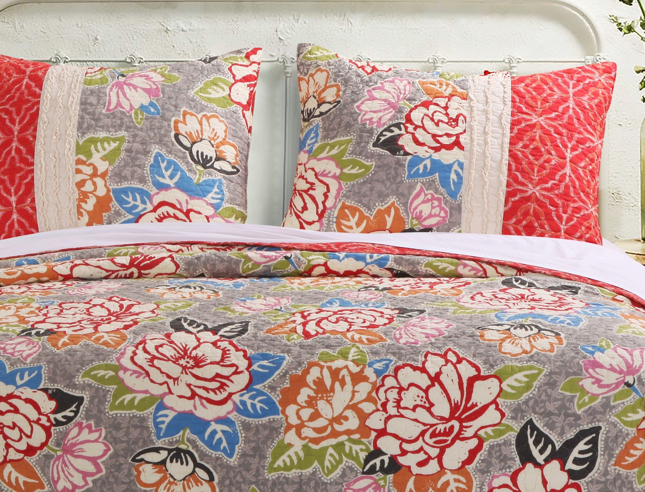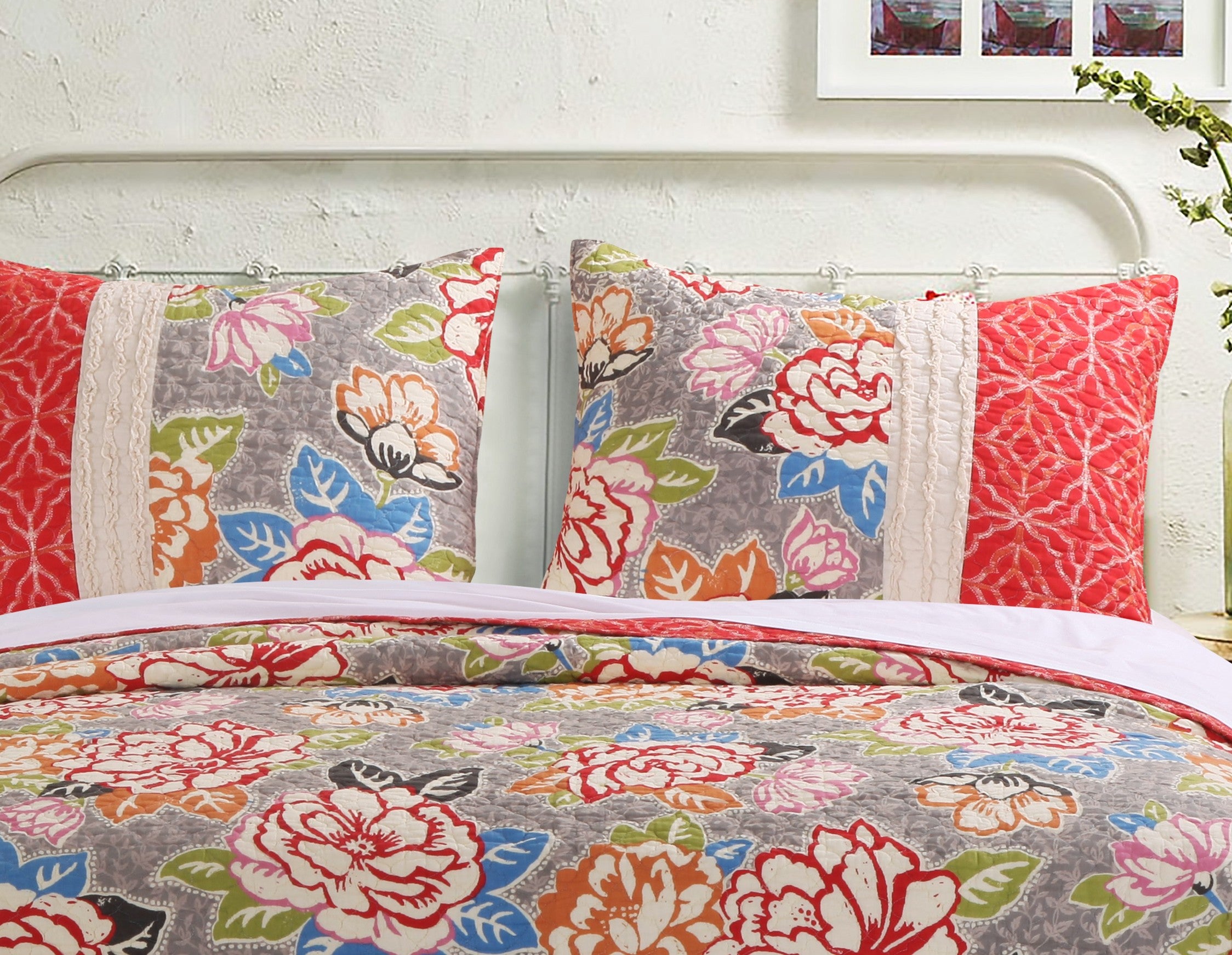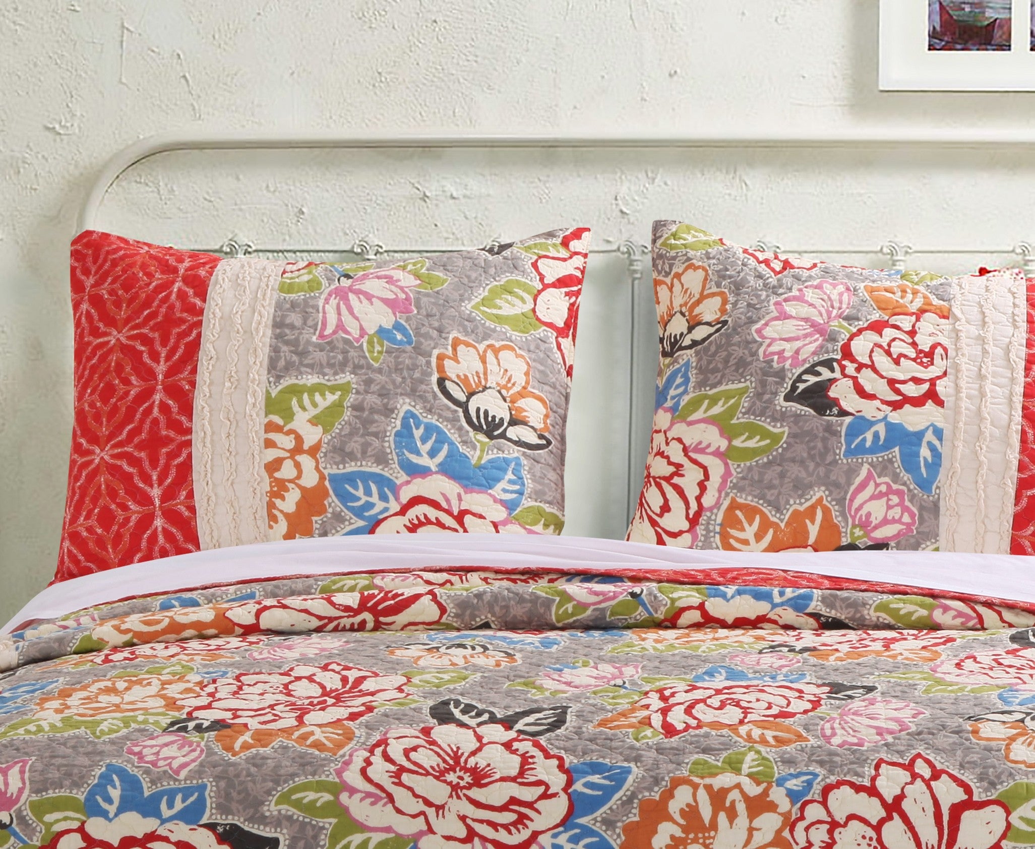 Greenland Home Fashions Gypsy Rose Multi Sham Modern Rose Print Reversible Standard and King Sizes
