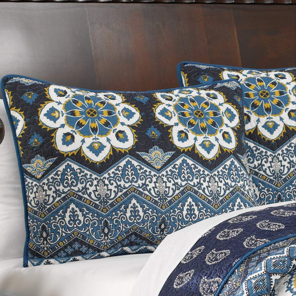 Greenland Home Fashions Medina Indigo Sham with Medallion and Paisley Print, Prewashed Cotton, Reversible Design