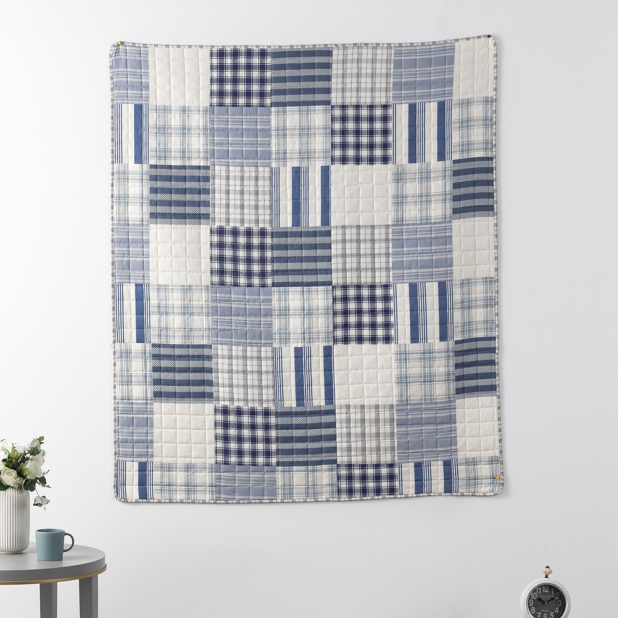 Freshen up your home with the Napa quilted throw. Designed with an understated sophistication that will compliment your country farmhouse decor, this collection commands traditional appeal. Featuring a classic combination of plaids and stripes in blues and grays on a natural ground, Napa`s patchwork print throw reverse to an all-over Tattersall plaid for two looks in one. Throw dimensions: 50x60 inches, +/- 2-inches. Machine Wash. 100% microfiber polyester face and back with cotton rich fill (60% cotton, 40% polyester), prewashed with extra softener for extra softness and comfort