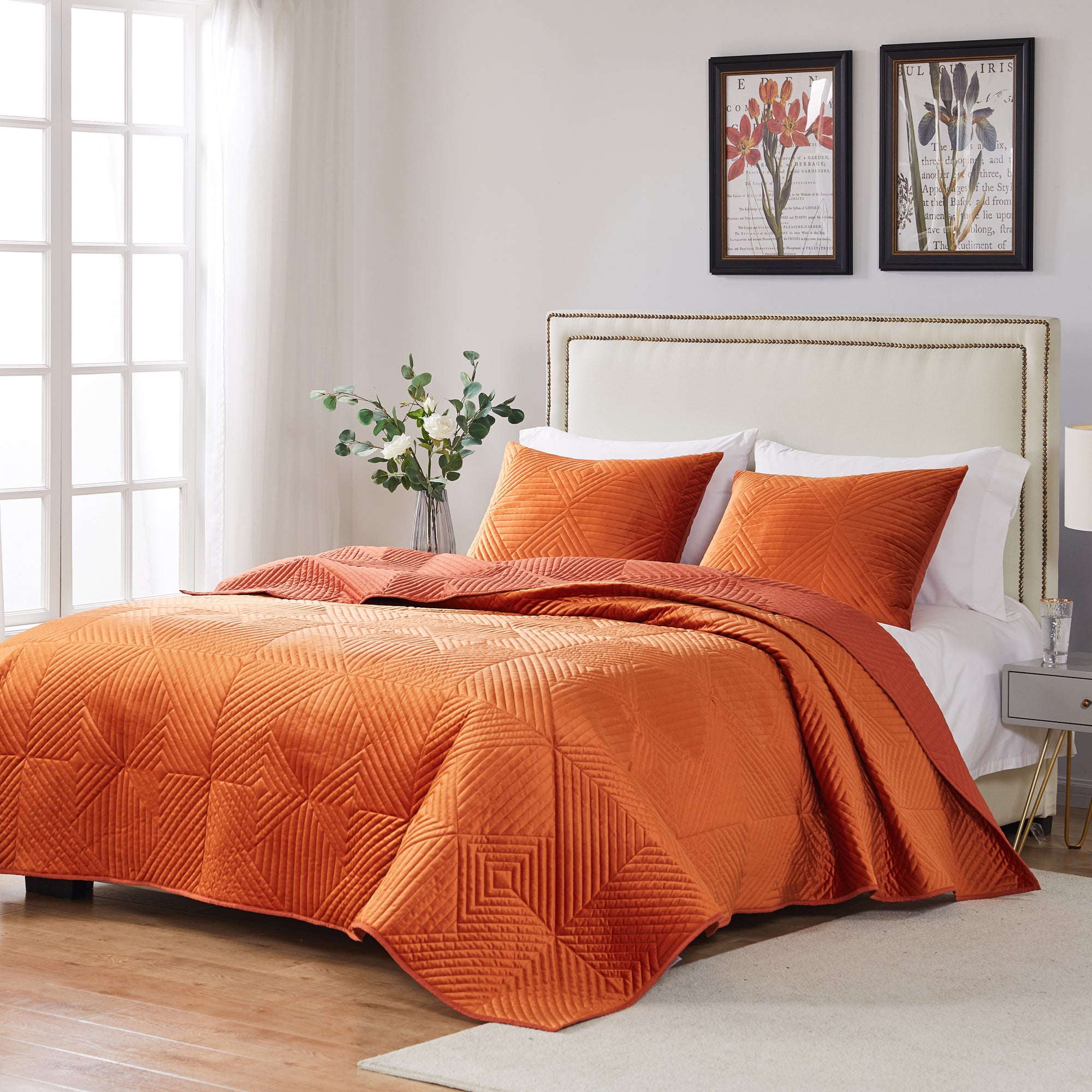 Add an irresistible layer of lavish velvet. This season, bring modern styling to your space with the Riviera Velvet quilt set. Each heirloom-quality set features machine quilted Dutch Velvet face for a soft, plush look and feel you`ll want breakfast in bed for. Perfect as a layering piece, or for the top of your bed, Riviera Velvet`s unique quilting pattern matches a variety of contemporary and industrial decor themes. Oversized for better coverage on today`s deeper mattresses. Quilt set comes with quilt and two pillow shams (one sham per Twin set). Dimensions: Twin set includes one 68x88-inch quilt plus one 20x26-inch pillow sham, Full/Queen set includes one 90x90-inch quilt plus two 20x26-inch pillow shams, King set includes one 105x95-inch quilt plus two 20x36-inch pillow shams. Dimensions +/- 2 inches. 100% polyester Dutch Velvet face; 100% microfiber back; 100% polyester fill. Machine Washable