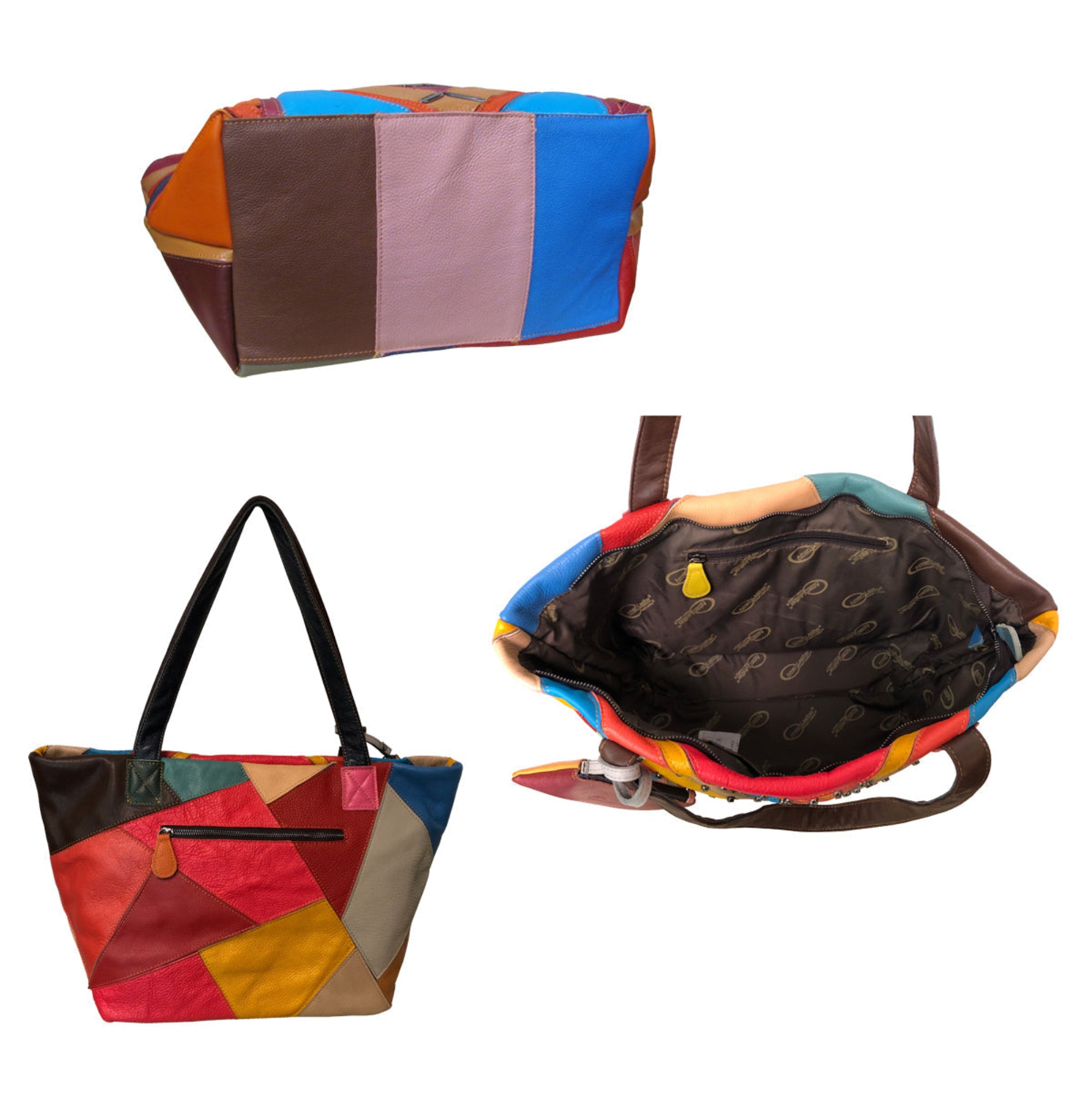 SKU - AML-1935-8Simonda Rainbow Tote – Cowhide Leather Tote Bag with Bold Multicolor Panels and Everyday Functional Style