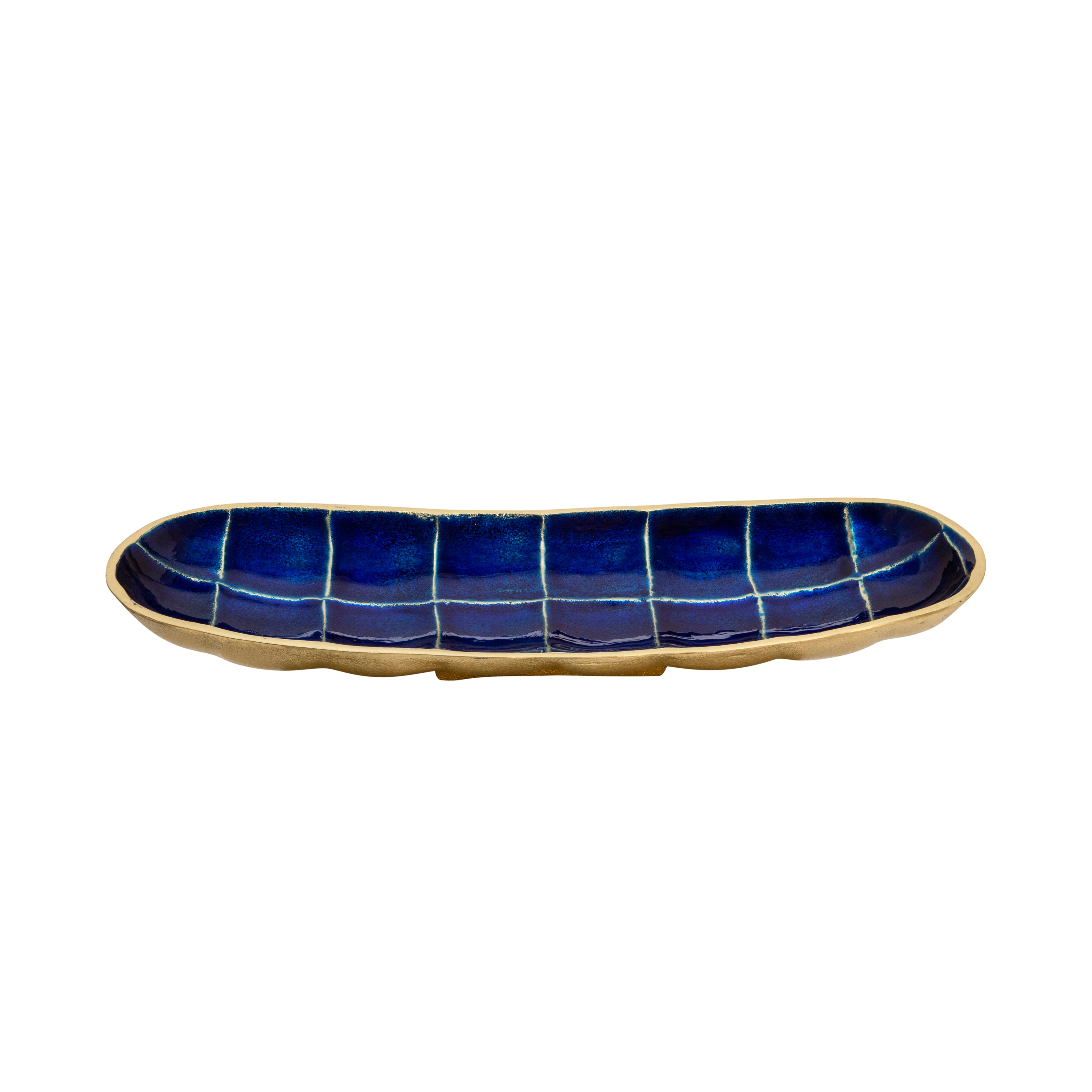 A beautiful set of decorative blue plates than can become a stunning center piece for your coffee table. With a tortoise shell pattern, and a gold finish on its outer surface. Giving your home a touch of contemporary coastal design, and a glamorous chic style.
